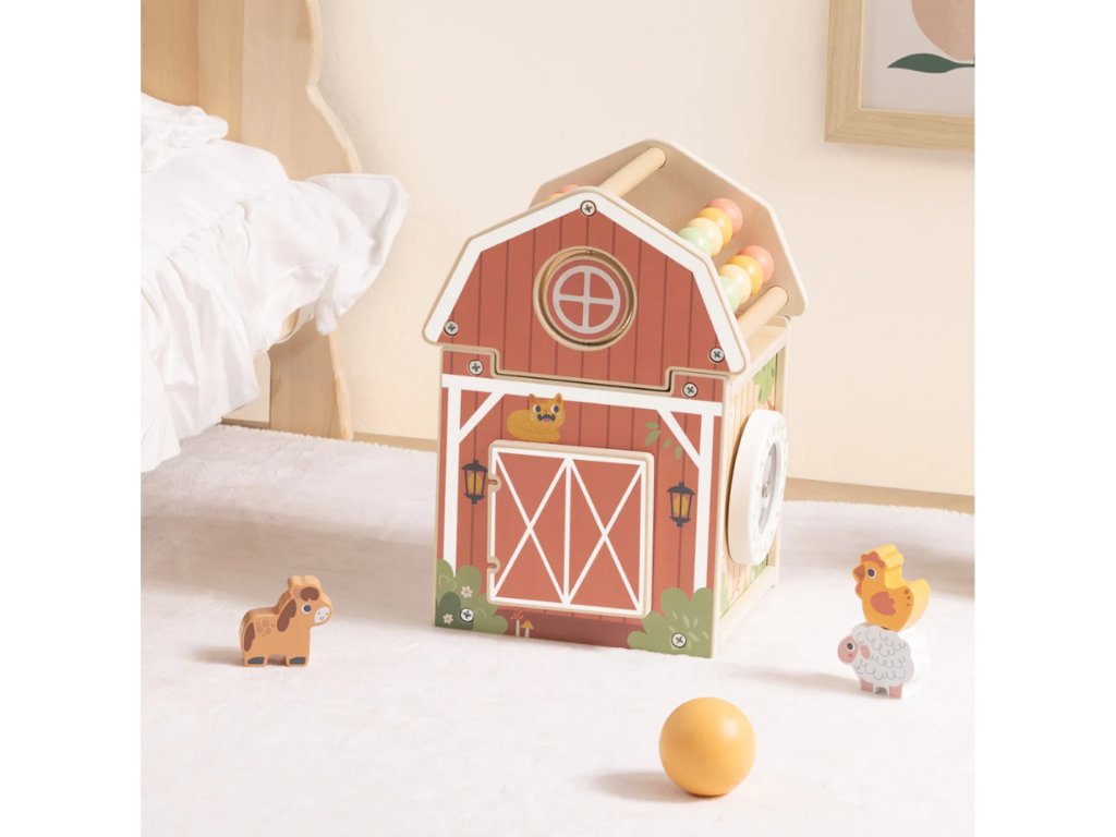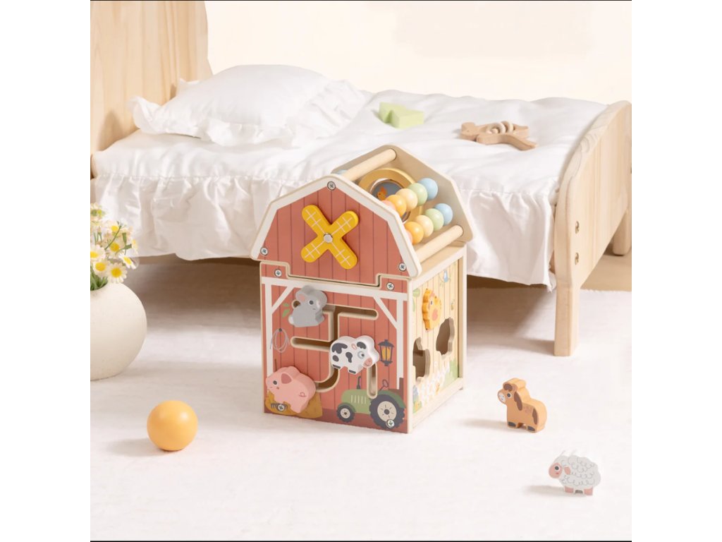 Aktivity domček Farma prináša deťom zábavné objavovanie sveta hospodárskych zvierat prostredníctvom vzdelávacích prvkov na všetkých stranách domčeka. Deti tu nájdu pohyblivé zvieratká, otočné diely, prevliekačku, farebné korálky a ďalšie interaktívne prvky, ktoré podnecujú prirodzenú zvedavosť.