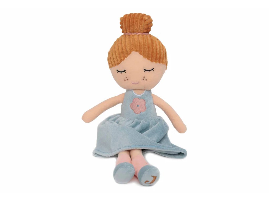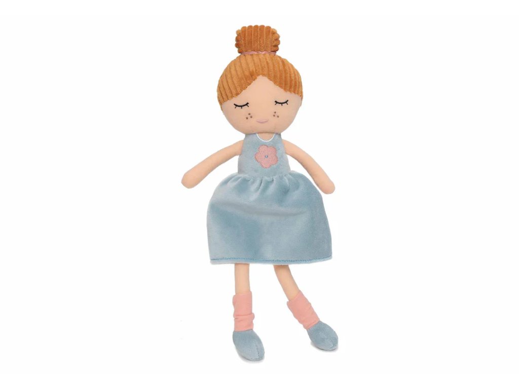Táto rozkošná textilná bábika s ryšavými vláskami, drdolom a morskou zelenou sukničkou je ako stvorená na objatia, hranie a sladké snívanie. Jej jemný úsmev a hebký materiál z nej robia neodolateľnú kamarátku pre malé deti.