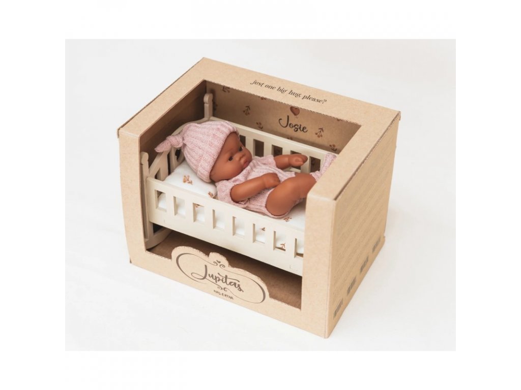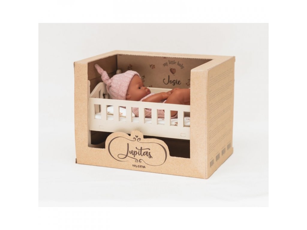 Lupitas sú mimoriadne nežné a ľahké bábiky. Bábika meria 20 cm a je v krásnom darčekovom balení s bielou drevenou hojdacou kolískou a posteľnou bielizňou (matrac, vankúš a plachta). Bábiky sú dostupné v 4 farebných variantoch ružová - JESIE, biela - JOY, hnedá - JULIE a ivory - JINNY každá s jemným motívom posteľnej bielizne.
