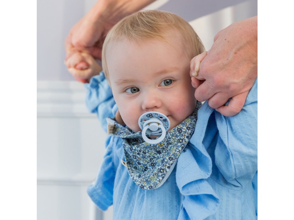 BIBS x LIBERTY Colour cumlíky v exkluzívnom dizajne s potlačou Liberty. Vyrobené z prírodného kaučuku. Veľkosť 1 (0–6 mesiacov), 2 ks, farba Baby Blue/Steel Blue.