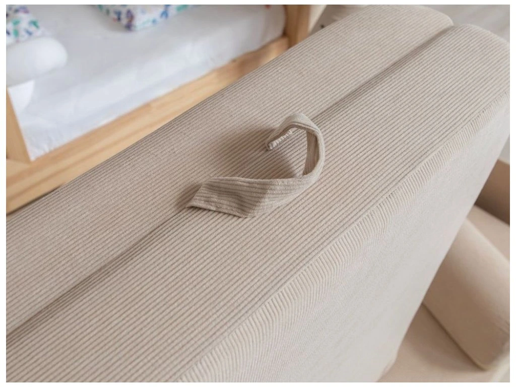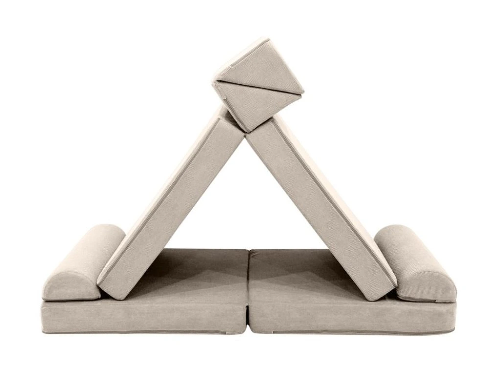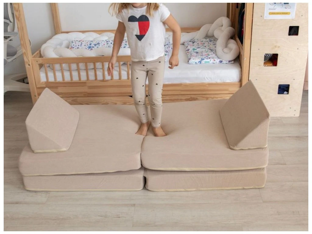 Mäkká detská pohovka v béžovom prevedení ponúka deťom pohodlie aj zábavu. Vďaka rozkladaciemu systému si z nej deti môžu vytvoriť bunker, miesto na oddych alebo priestor na hranie.