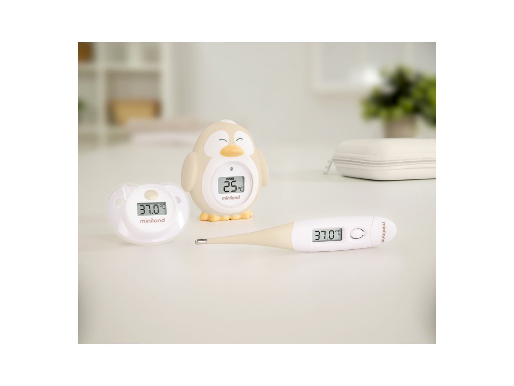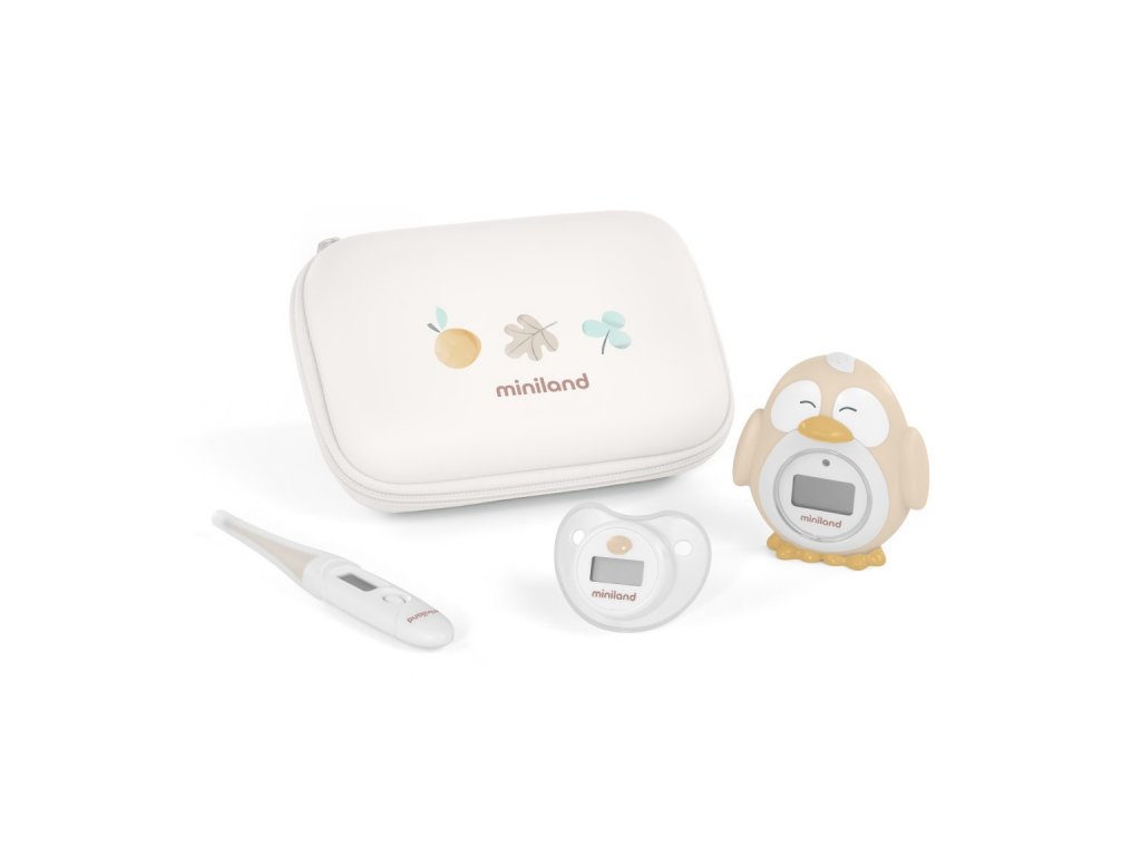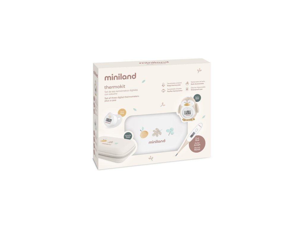 Súprava Miniland Thermokit Valencia obsahuje tri praktické teplomery v jednom vodeodolnom puzdre na zips. Tento set vám umožní rýchle, bezpečné a pohodlné meranie teploty vášho dieťaťa, či už pri horúčke, kúpeli alebo v miestnosti.