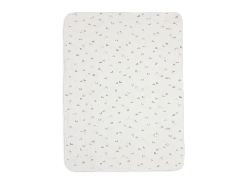 Deka Jollein On The Go 75×100 cm je must-have do každej detskej izby plnej fantázie a objavovania. Vyrobená z jemného, mäkkého džersejového úpletu, ktorý je príjemný na dotyk a šetrný k pokožke dieťaťa.