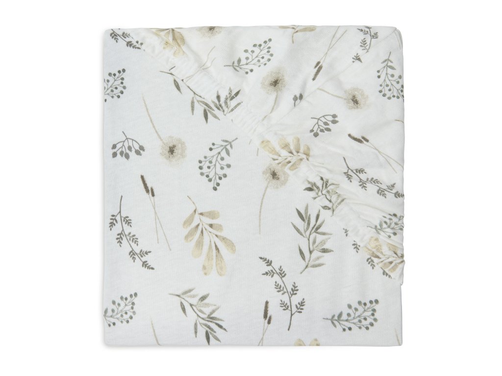 Mäkká detská plachta Jolly 120×60 cm z jersey bavlny s elastickými okrajmi. Priedušná, príjemná na dotyk a so štýlovým kvetinovým motívom.