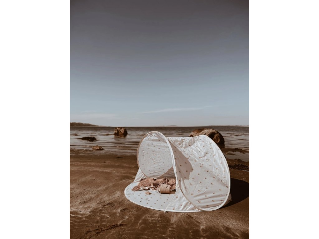 S rozmermi 145 x 145 x 80 cm ponúka dostatok priestoru pre dieťa na hranie alebo spánok v tieni. Po zložení má priemer 64 cm, vďaka čomu ho ľahko zbaliť a vziať kamkoľvek.
