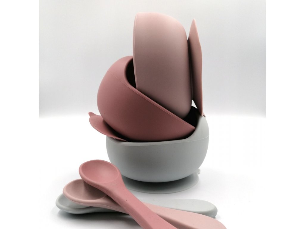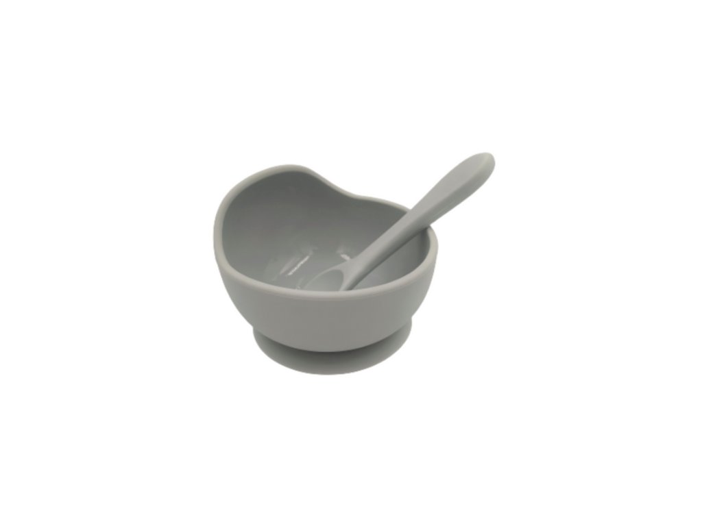 Protišmyková miska s lyžičkou pomôže pri výučbe dieťaťa pri samostatnom kŕmení bez toho, aby ju vaše dieťa zhodilo zo stola. Veľkosť lyžičky je prispôsobený pre naberanie ideálnej veľkosti porcie jedla. Materiál sady je 100% potravinársky silikón, ktorý je antialergický, antibakteriálny bez fosfátov, PVC, pachov a chutí.