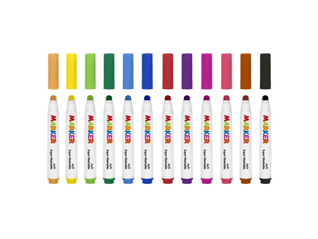 Hrubé, zmývateľné fixky od Tookyland sú perfektné pre začínajúcich malých umelcov. Balenie obsahuje 12 krásnych, sýtych farieb, ktoré sa ľahko nanášajú a nerozmazávajú sa. Fixky majú veľký, oblý hrot, vďaka čomu sú ideálne pre deti, ktoré len začínajú kresliť. Farba nepresakuje cez papier, čo zaručuje čistú a zábavnú tvorivú činnosť.