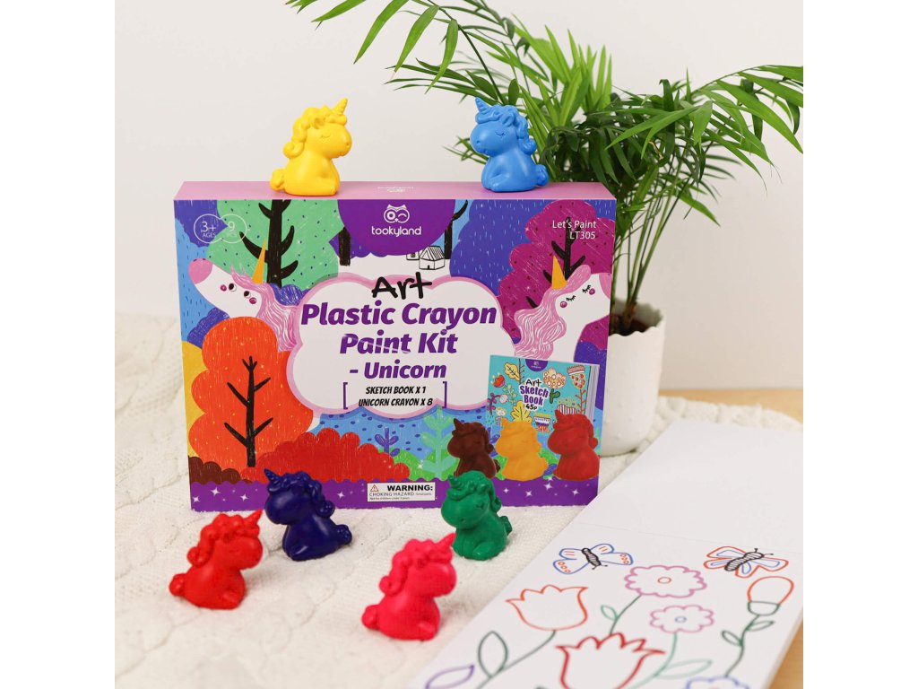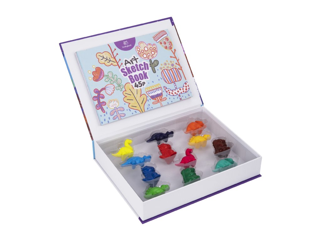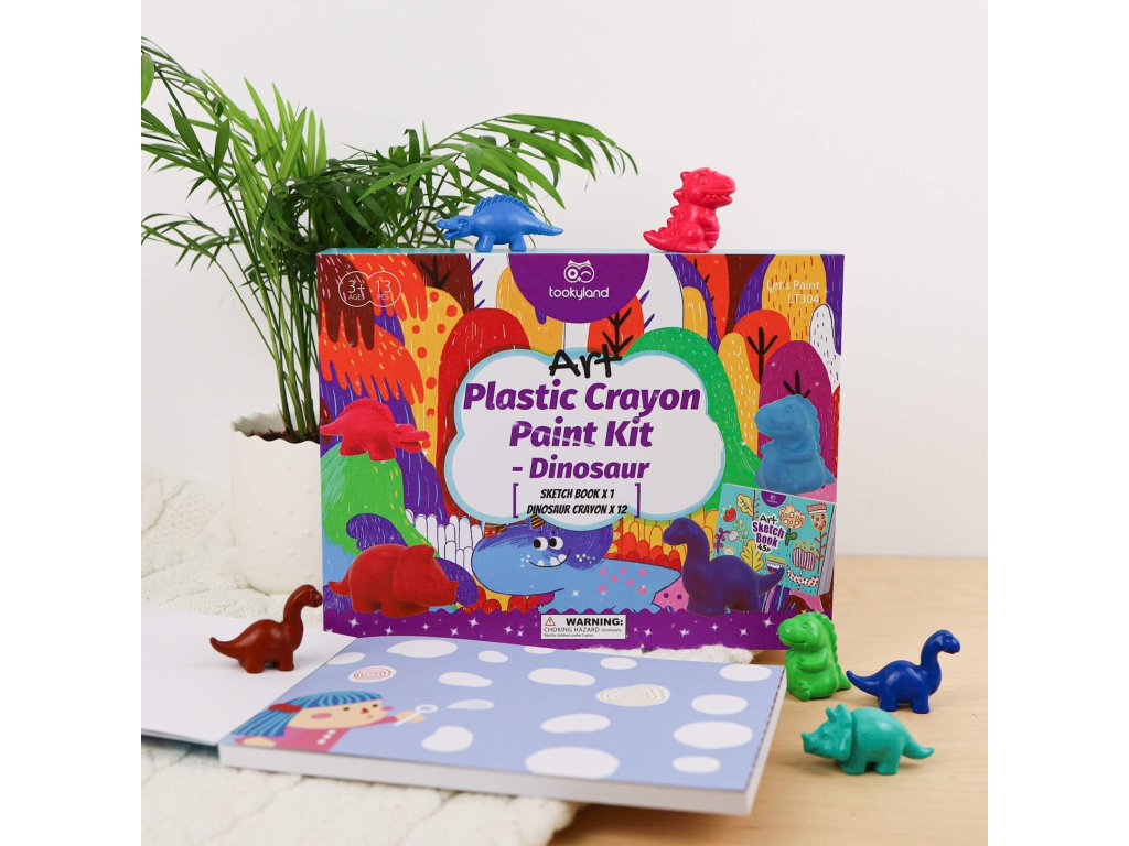 Kreativná sada Prvé voskovky 2 v 1 Dinosaurus. Voskovky pre najmenších v darčekovom balení. Kreatívna sada 2 v 1 Dinosaurus od Tookyland je určená pre najmenších umelcov, ktorí sa ešte len zoznamujú s tvorením. V pevnom uzatvárateľnom boxe deti nájdu 12 nádherne farebných voskoviek v podobe roztomilých dinosaurov a 1 kreatívny zošit so 45 listov plný omaľovánok aj prázdnych papierov na kreslenie. Vďaka krásnemu baleniu je táto kreatívna sada vhodná pre najmenších ako darček k narodeninám, Vianociam či sviatku.Bezpečné a ergonomické voskovkySúprava pomôže deťom s rozvojom kreativity, tvorivosti, grafomotoriky i poznávaním farieb. Voskovky pre najmenších Dinosaurus sú úplne bezpečné a skvelé do malých ručičiek. Je jedno, ako ich deti uchopia, píšu z každej strany, nepatlajú sa na ruky a idú ľahko zmyť. Kreatívne potreby Tookyland sú bezpečné, navrhnuté odborníkmi priamo pre malé detské ruky a vyrábané s ohľadom na životné prostredie. Farby sú netoxické, dermatologicky testované, zmývateľné a dajú sa vyprať.