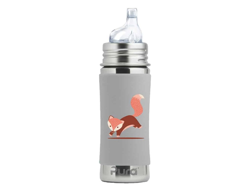Bezpečná nerezová fľaša Pura 325ml s náustkom – 100% bez plastov, BPA free, netečúca a odolná. Ideálna pre deti, rastie s nimi vďaka vymeniteľným uzáverom. Ľahká, nerozbitná a ekologická voľba so silikónovým náustkom medicínskej kvality.