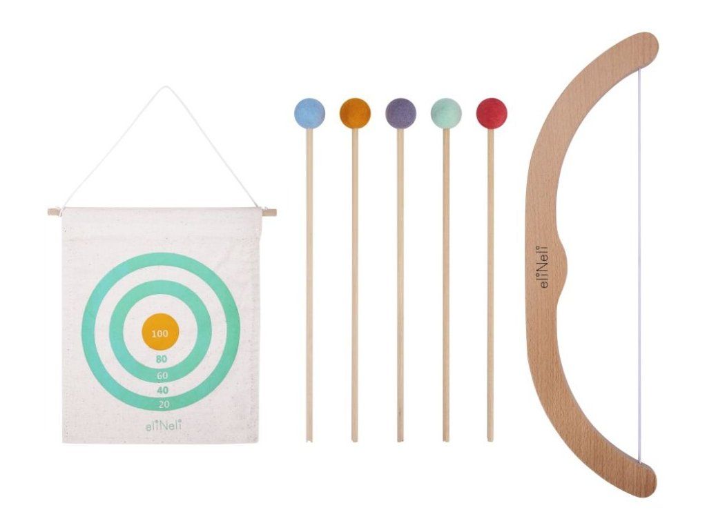 Táto drevená sada umožňuje deťom vyskúšať si lukostreľbu bezpečným a zábavným spôsobom.