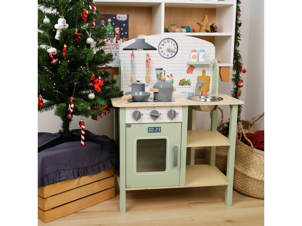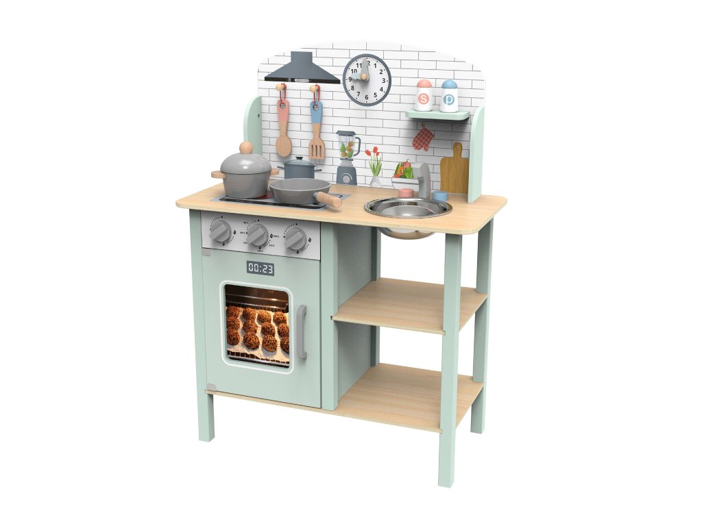 Detská kuchynka z dreva v pastelových farbách od Tooky Toy je ideálnou hračkou pre malých kuchárov a cukrárov. Táto krásna kuchynka sa stane jedinečným doplnkom každej detskej izbičky a podporí hru na rolové hry, vďaka čomu si deti môžu zahrať na dospelých a vyskúšať si rôzne profesie.