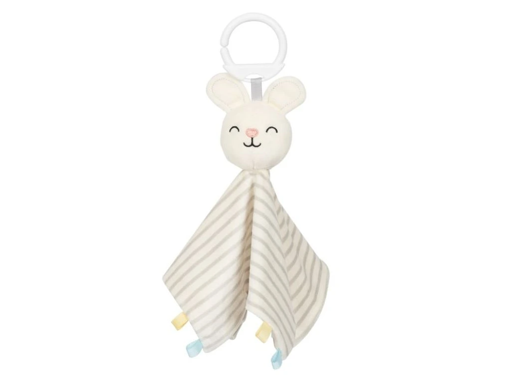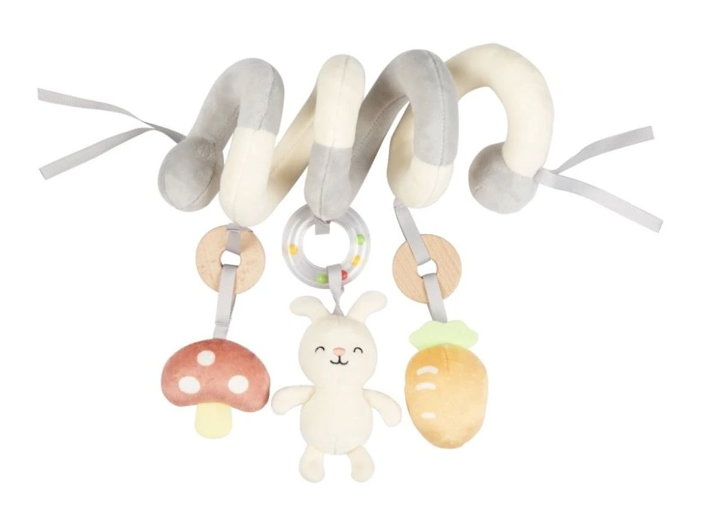 Mäkké materiály a príjemné prevedenie pomáhajú dieťa upokojiť. Ideálne ako prvá hračka do postieľky alebo kočíka.