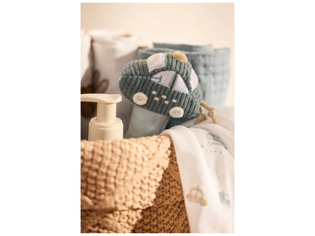 Plyšová hrkálka Jollein On The Go v jemnom odtieni Cloud Blue je navrhnutá pre pohodlné uchopenie a hravé objavovanie. Tvar autíčka s mäkkou spodnou rukoväťou uľahčuje držanie aj tým najmenším rúčkam.