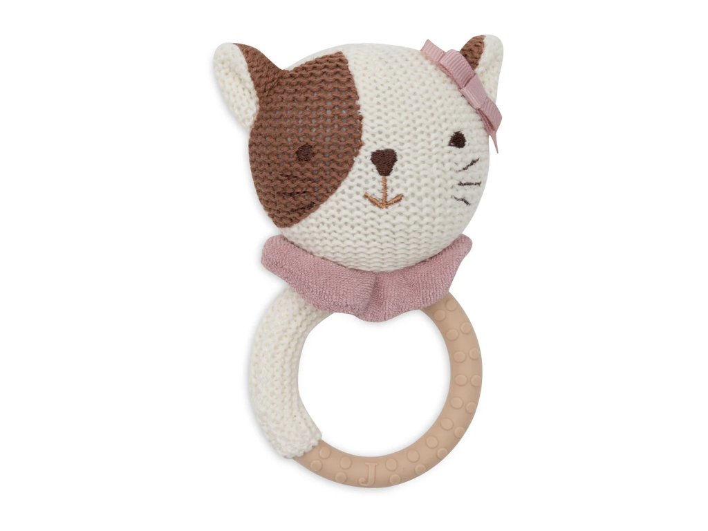 Roztomilé silikónové hryzátko s motívom mačky, ktoré pomáha bábätkám pri prerezávaní zúbkov. Hryzátko Jollein Jill kombinuje mäkký silikónový krúžok a pletenú hlavičku, ktorá zaujme detské zmysly.