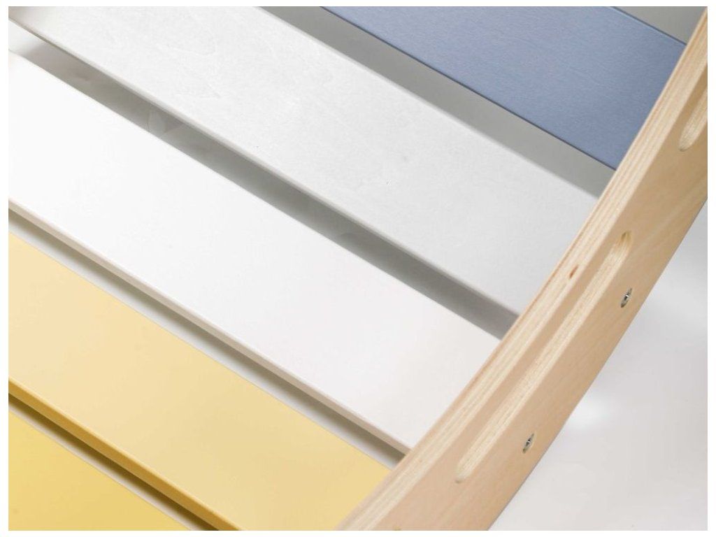 Vyrobená je z pevného dreva s hladkým povrchom a zaoblenými hranami. Použité farby sú bezpečné pre deti a vhodné na každodenné používanie.