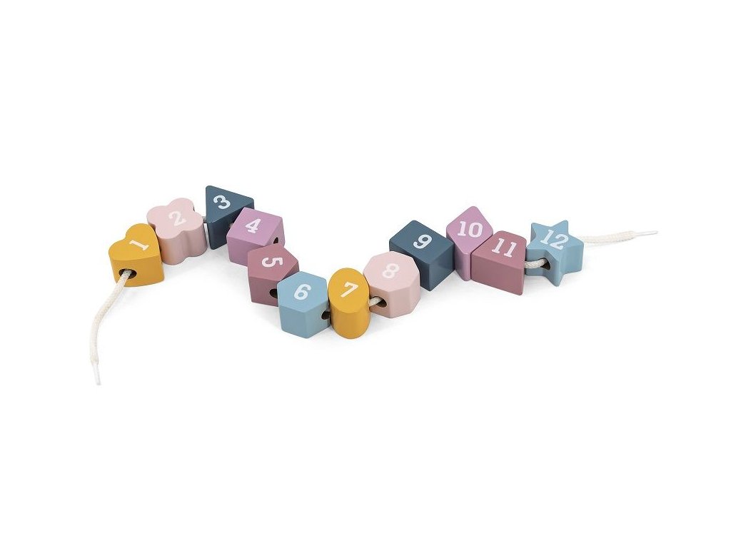 Bloky rôznych tvarov môžu deti vkladať do príslušných otvorov alebo navliekať na šnúrku. Táto činnosť posilňuje úchop, koordináciu ruka–oko a precvičuje jemnú motoriku, ktorá je dôležitá pre ďalšie učenie, napríklad kreslenie alebo písanie.