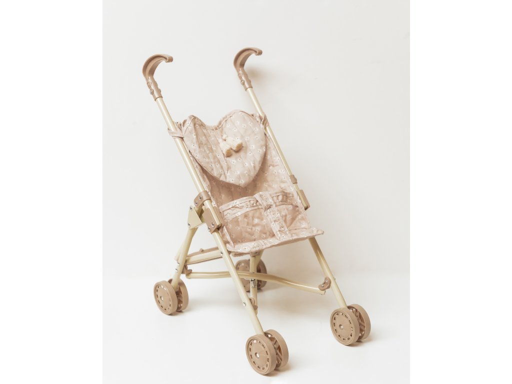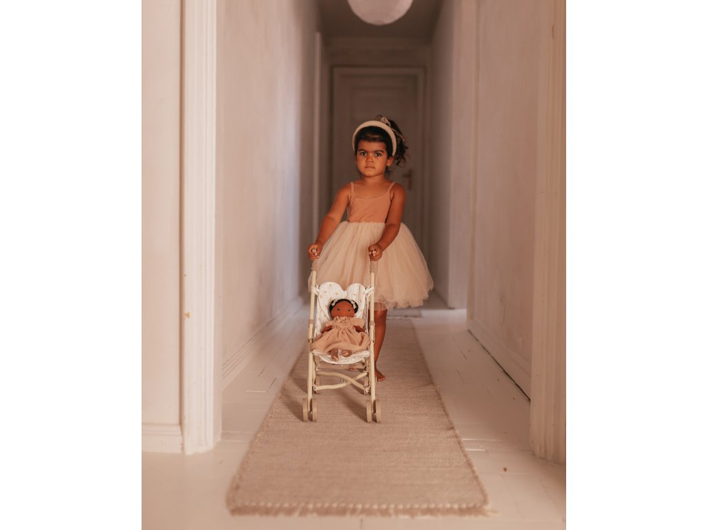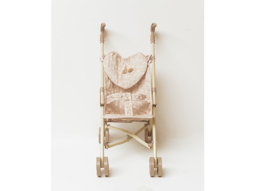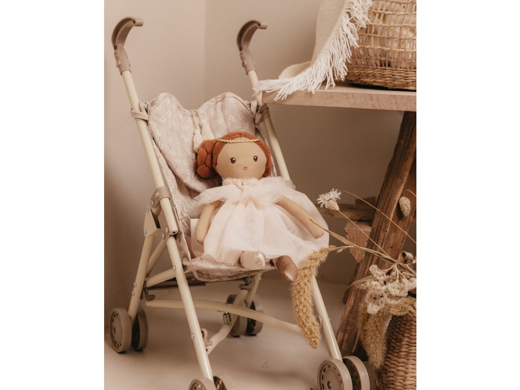 Nádherná nová kolekcia skladacích kočíkov Mrs. Ertha! Štýlový krémový dizajn rámu kočíka je vyrobený z pevného železa, dvojité kolieska na každej nohe zabezpečujú stabilitu, textilné časti sedadla z organickej bavlny sú odnímateľné. Každý kočík dokonale dopĺňa malá taška v tvare srdca v boho štýle, do ktorej sa dajú uložiť drobné navyhnutnosti. Dokonalý darček pre každú malú dievčinku a jej bábiku balený v bavlnenom púzdre. Rozmery: Zložený kočík: 56cm | Otvorený kočík: šírka 21cm, výška 50cm, dĺžka 23cm Váha: 720 gDodatočné parametre