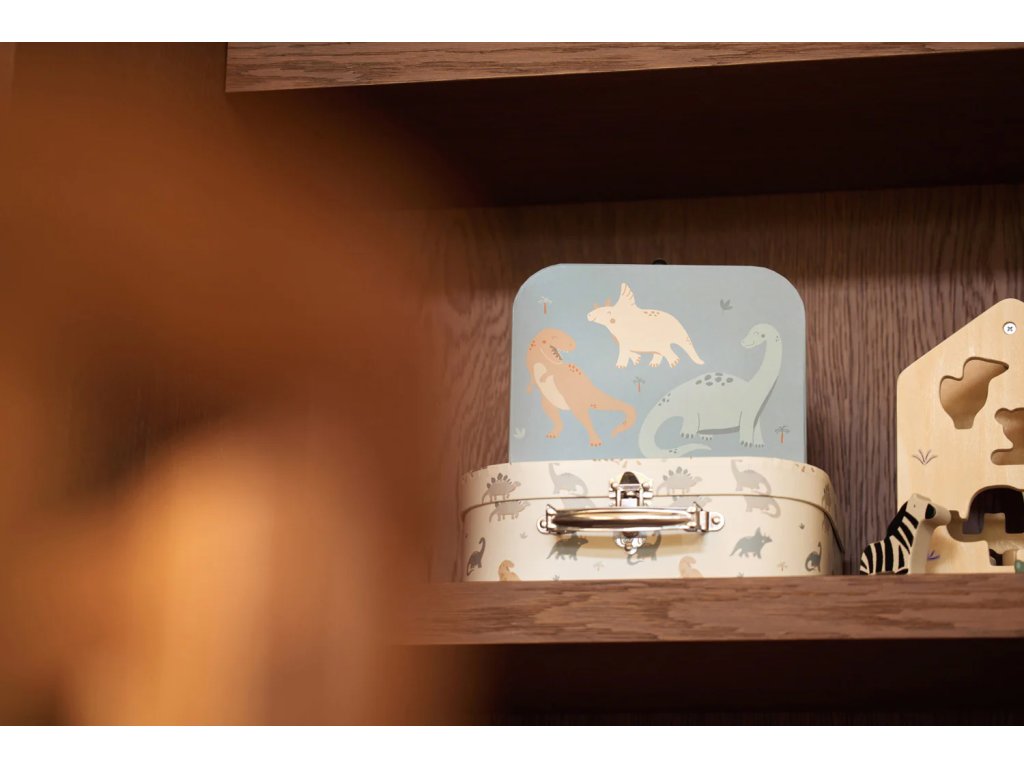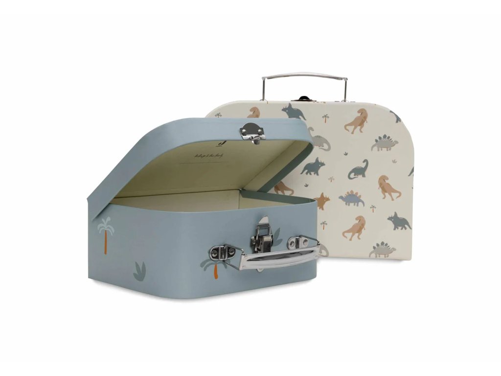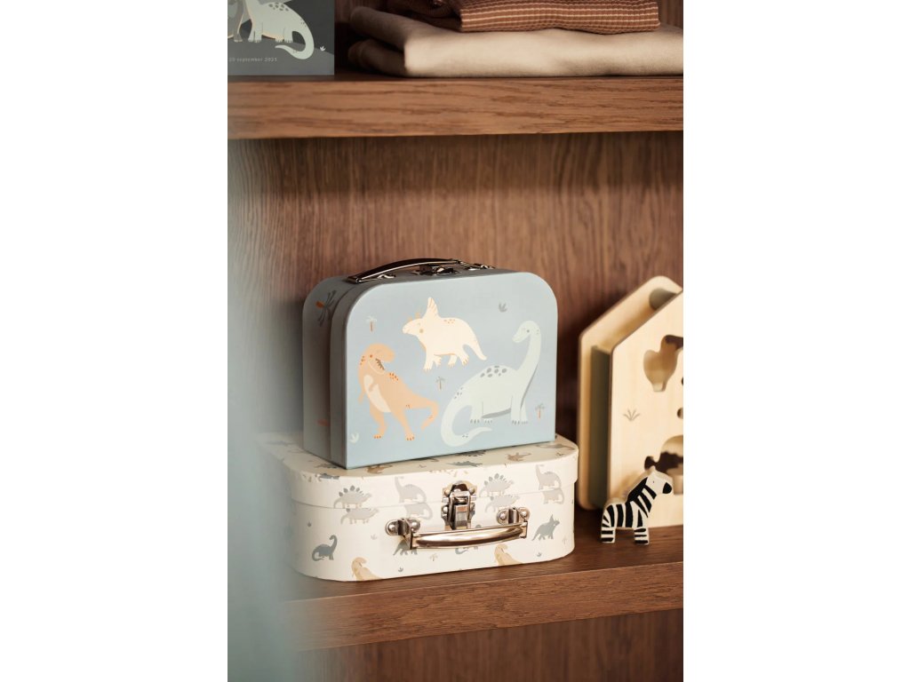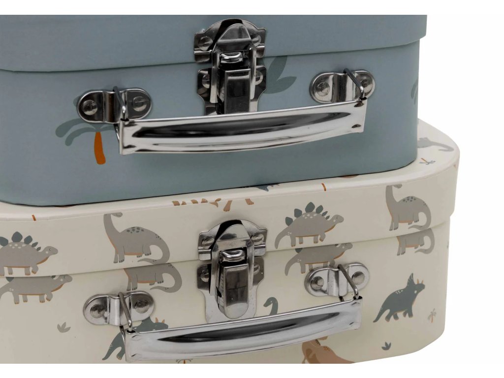 Sada obsahuje dva kufríky rôznych veľkostí s dinosauřím motívom – ideálne na hračky, knižky, kreatívne potreby alebo drobnosti, ktoré chce mať dieťa vždy po ruke.