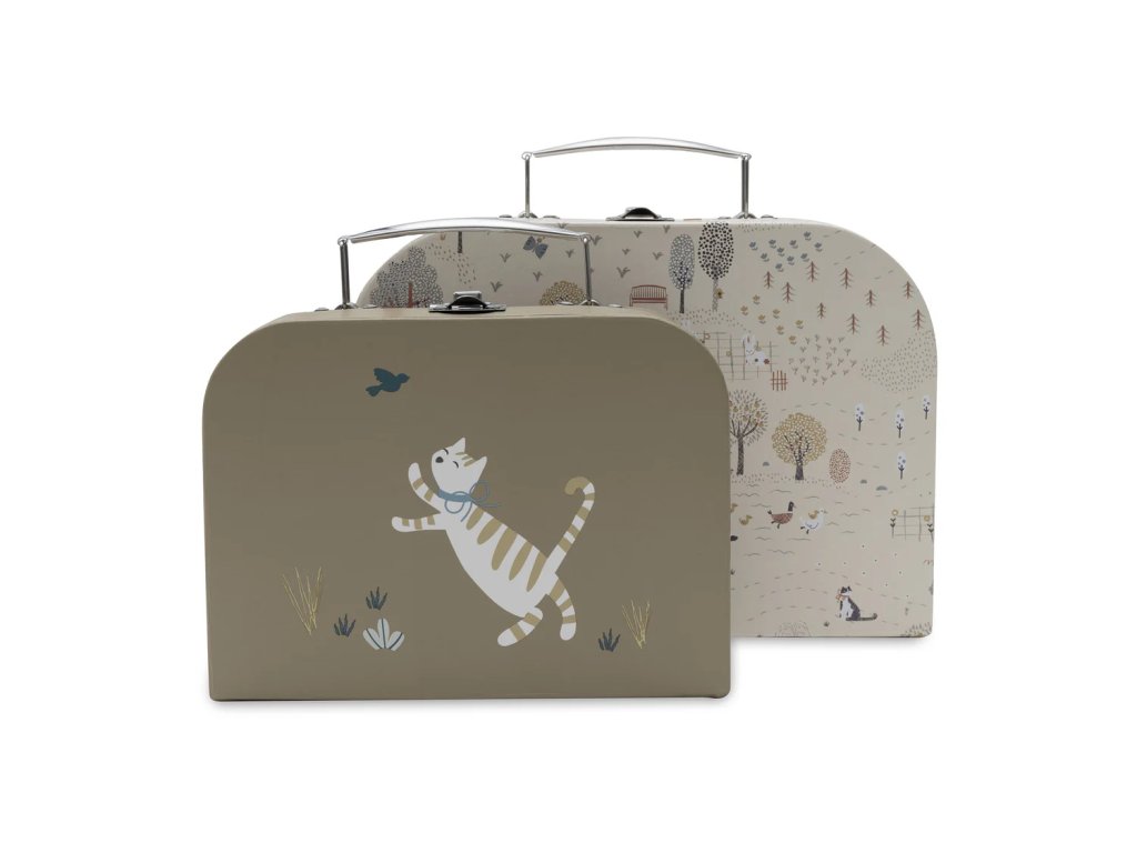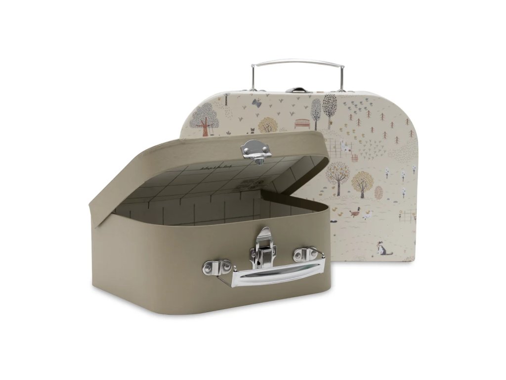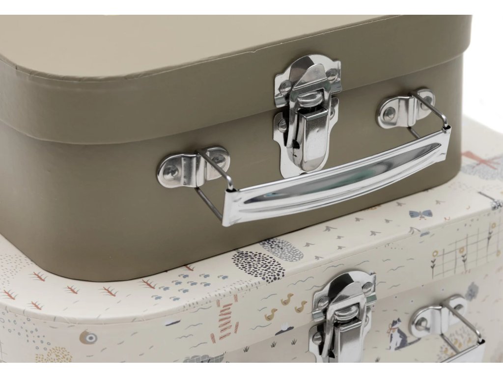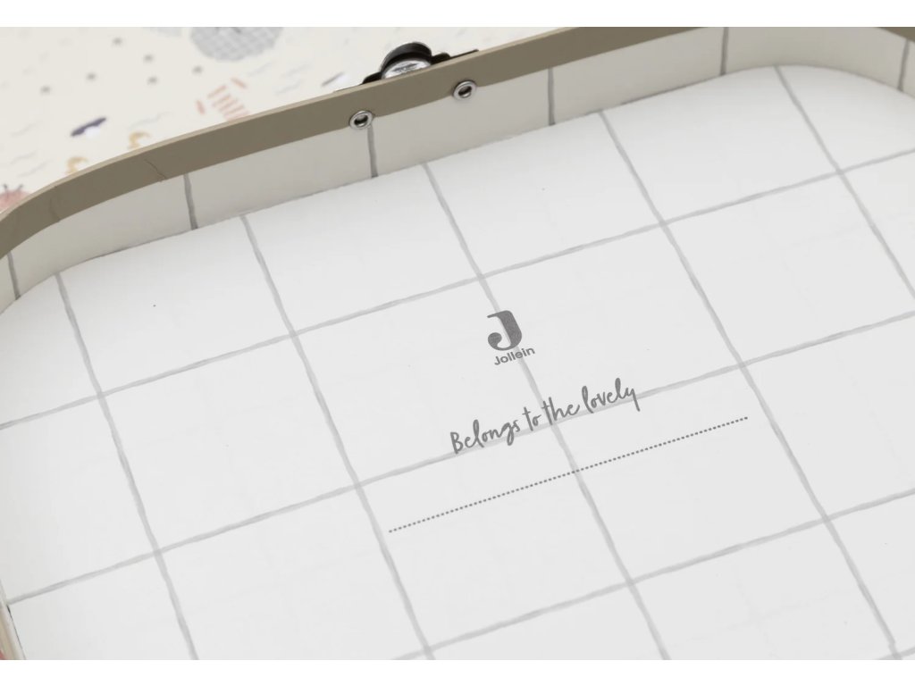 Vnútro kufríkov je doplnené jemným kockovaným vzorom a nápisom „belongs to“, vďaka ktorému si dieťa môže kufrík označiť ako svoj vlastný. Kufríky sú vhodné na drobné hračky, poklady, písacie potreby alebo ako štýlová dekorácia do detskej či bábätkovskej izby.