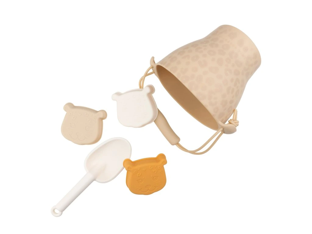 Doprajte deťom nekonečnú zábavu na pieskovisku, na pláži aj vo vode vďaka tejto sade na piesok. Sada obsahuje vedierko, lopatku a 3 bábovky v podobe leopardej hlavičky. Súčasťou balenia je aj sieťka, do ktorej sa všetky hračky krásne uložia.