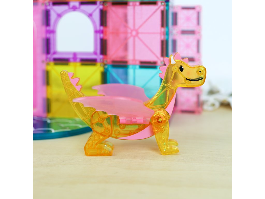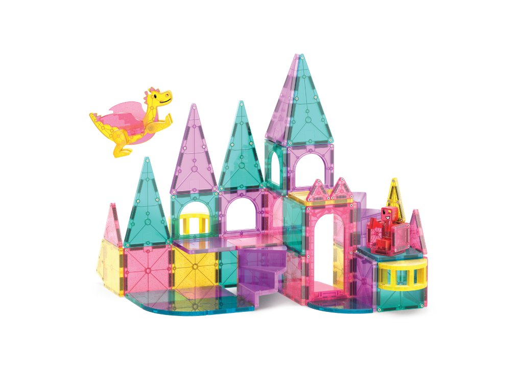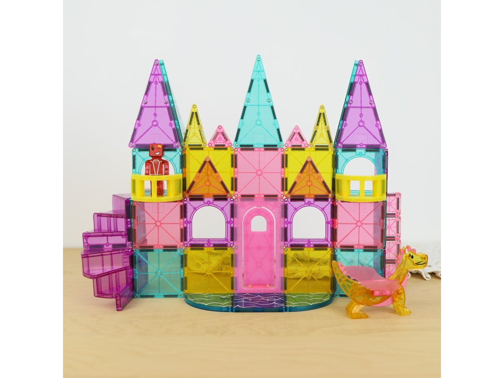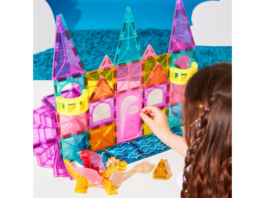 MAGNA-TILES Castle DLX magnetická stavebnica prenesie deti do čarovného rozprávkového kráľovstva plného veží, mostov a drakov. Deti môžu otvoriť funkčný padací most, postaviť balkóny, schodiská či vysoké veže a vznášať sa po oblohe s kúzelnou figúrkou draka. Každá hra sa mení na nový dobrodružný príbeh plný fantázie a kreatívneho stavania.