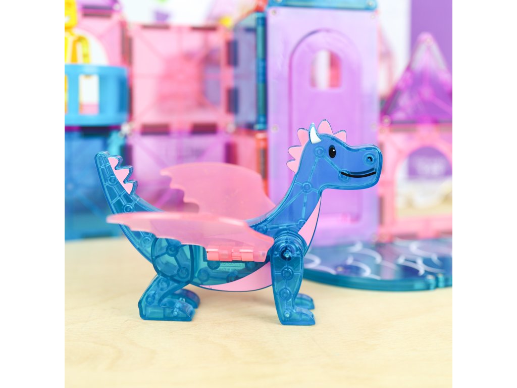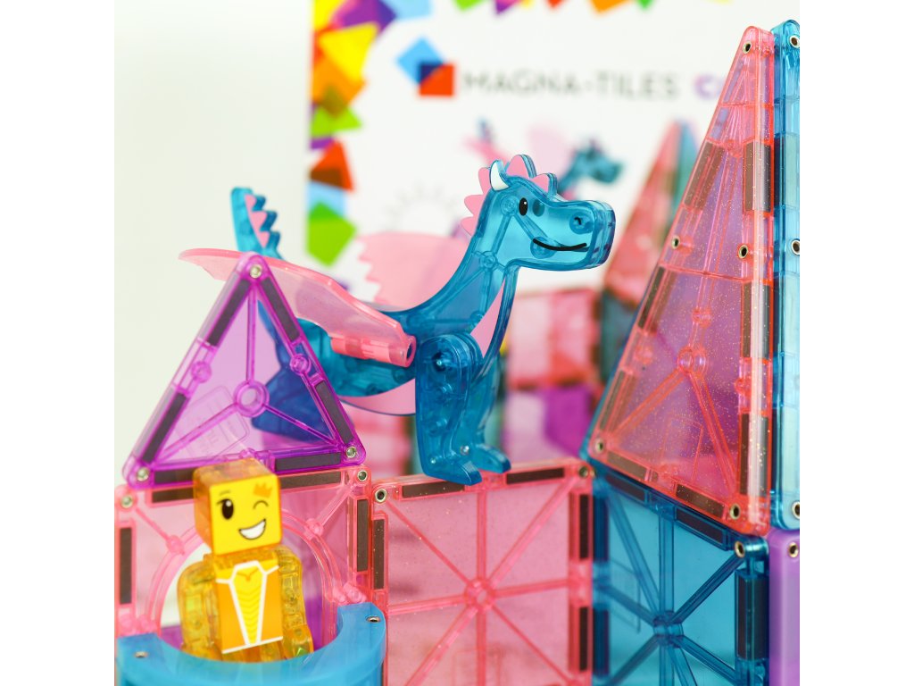 je kreatívna stavebnica Magna-Tiles určená pre malé princezné. Ponúka magické prvky ako padací most, figúrku draka, točité schodisko a balkón, ktoré prinášajú nový rozmer do hry. Trblietavé dieliky rozvíjajú detskú fantáziu a stavebnica podporuje rozvoj jemnej motoriky, logického myslenia a koordinácie ruka-oko. Vyrobená z bezpečného, netoxického plastu bez BPA a ftalátov, stavebnica obsahuje 25 dielikov kompatibilných s ďalšími Magna-Tiles setmi.