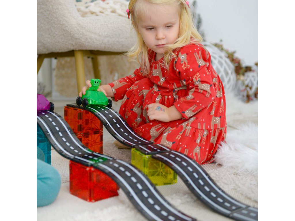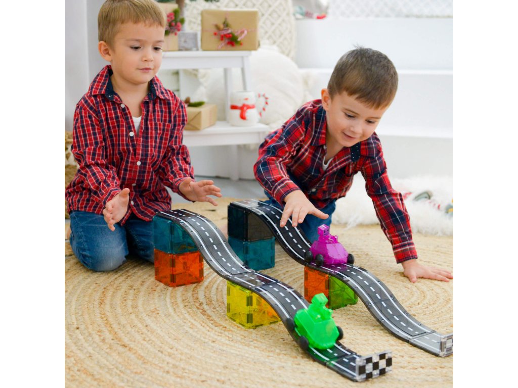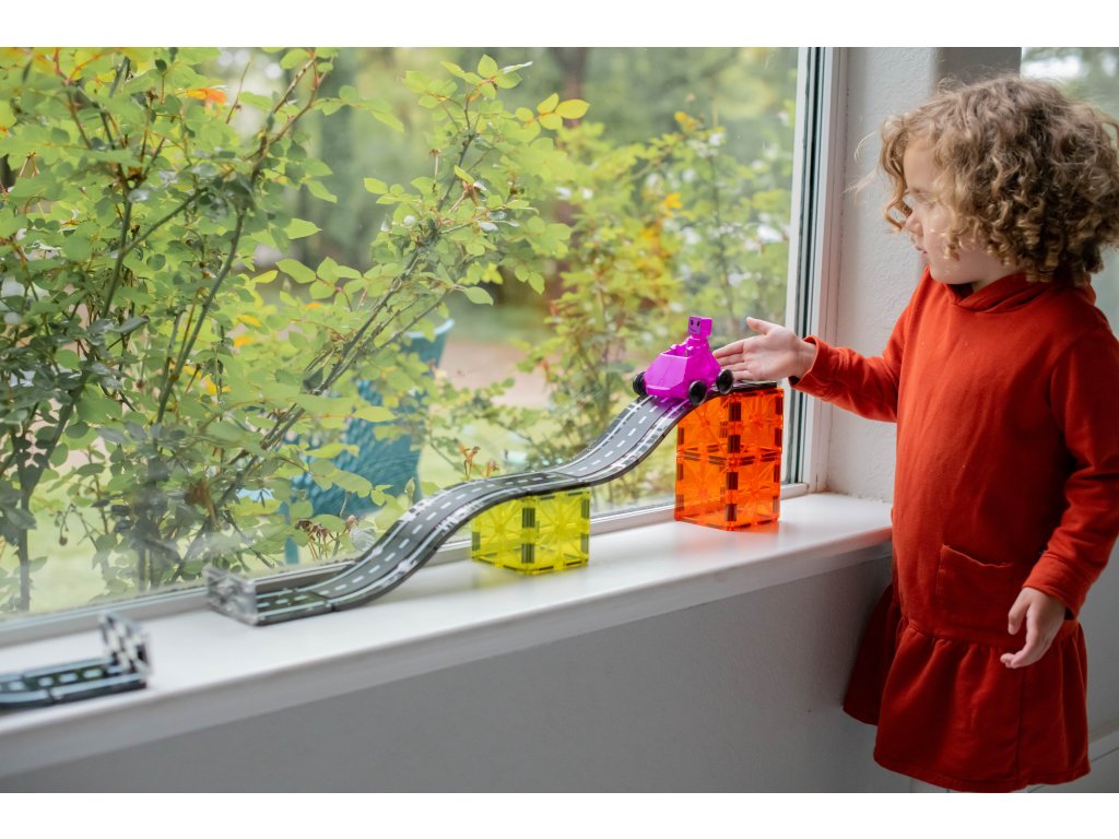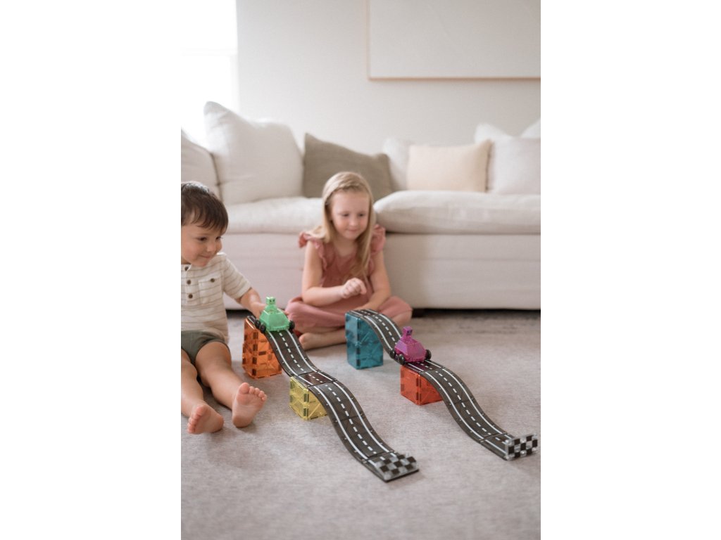 Malí pretekári si môžu postaviť mega rampu alebo usporiadať preteky dvojíc v zjazde vedľa seba. Všetky diely sú plne kompatibilné a dopĺňajú sa so všetkými ostatnými súpravami Magna-Tiles, vrátane obľúbených súprav Builder a Metropolis. Skvelý spôsob, ako inšpirovať detskú kreativitu, budovať motorické zručnosti a podporovať učenie detí. Zmysluplná stavebnica pre malých staviteľovMagna-Tiles je zástancom zmysluplnej hry, to znamená zábavnej a pútavej, no zároveň založenej na rozvíjaní detských zručností. Táto stavebnica podporuje rozvoj koordinácie ruka-oko, jemnej motoriky a logického myslenia prostredníctvom skúmania príčiny a následku.