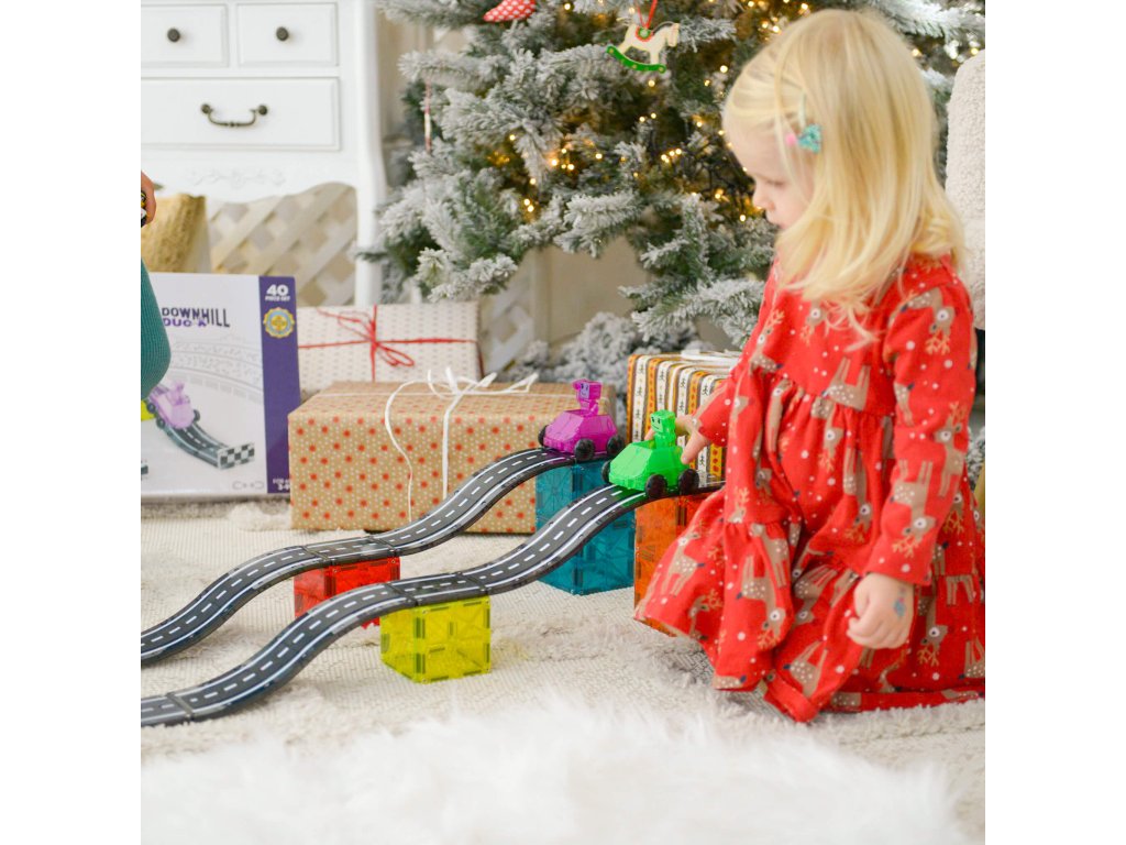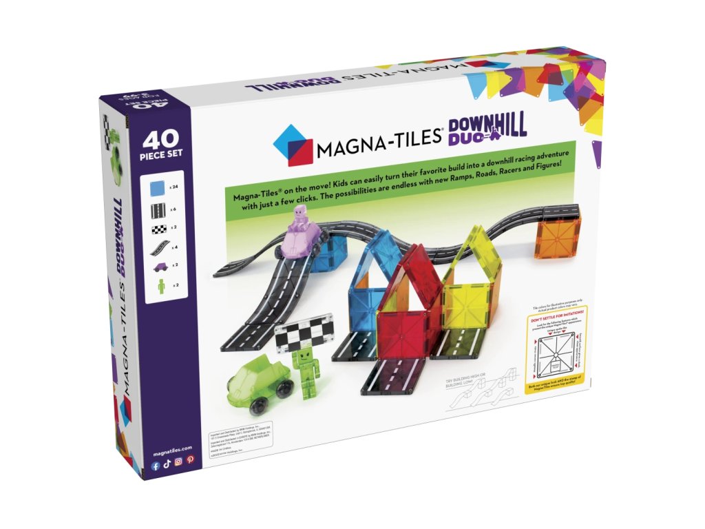 Pripraviť sa, pozor, štart. Milujú vaše deti autá? Predstavujeme vám magnetickú súpravu Magna-Tiles Downhill Duo, ktorá obsahuje plne magnetické figúrky vozidiel a jazdcov.