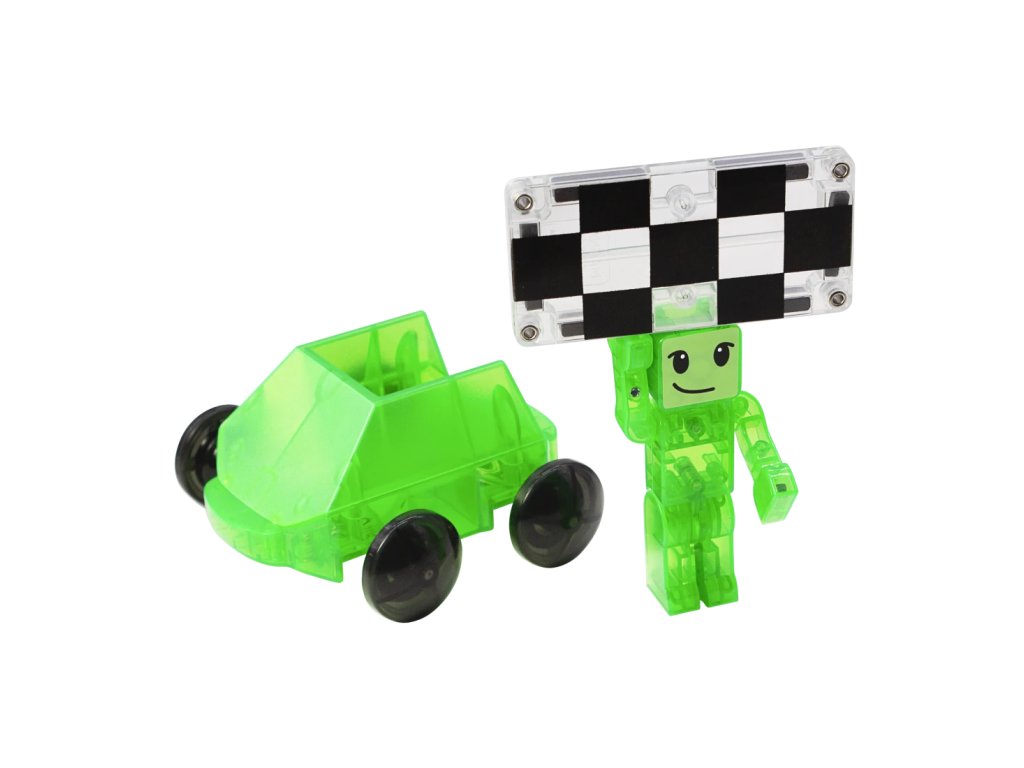Bezpečnosť a špičková kvalita sú zaistené použitím potravinárskeho, netoxického plastu MABS bez BPA, ftalátov a latexu. Pevná konštrukcia dielikov zabraňuje praskaniu a udržiava magnety bezpečne na svojom mieste.Sada obsahuje 40 magnetických dielikov:4x rampa,2 x vozidlo (zelené a fialové),2x figúrka (zelená a fialová,6x štvorec cesta,24x štvorec,2x obdlžník označujúci cieľ.