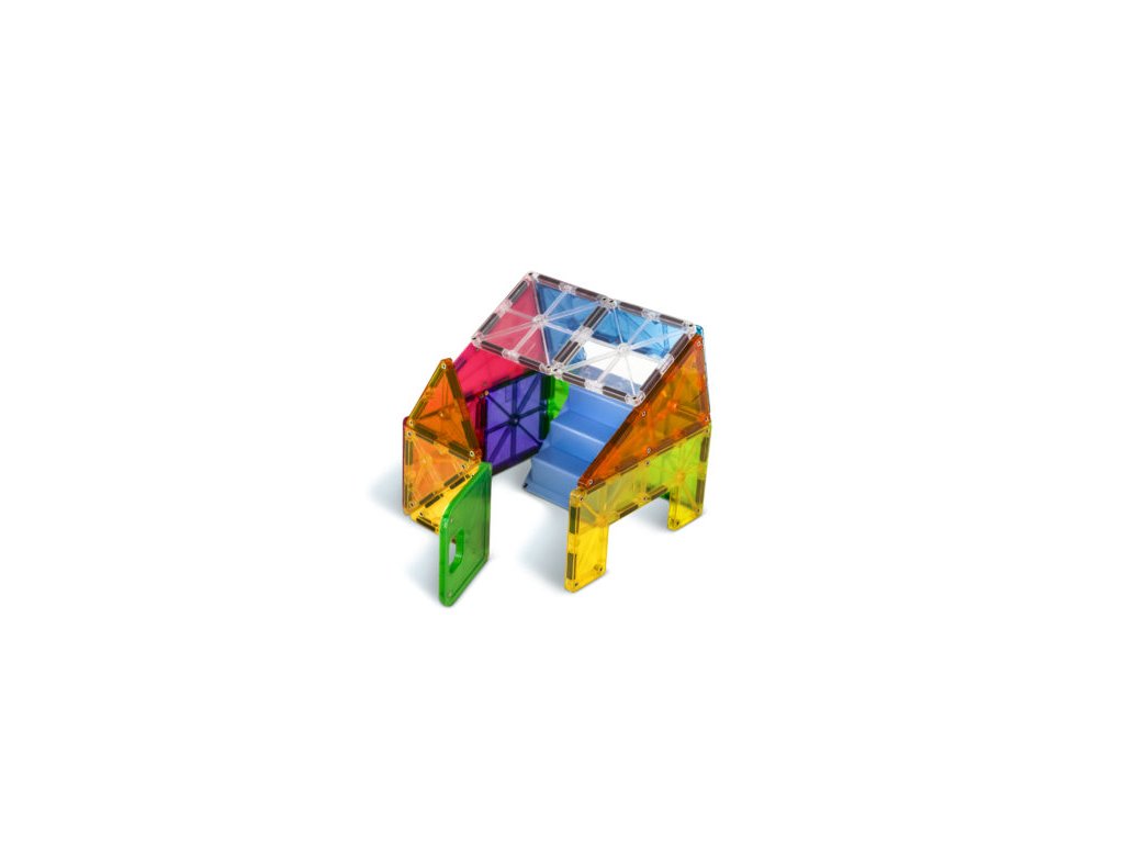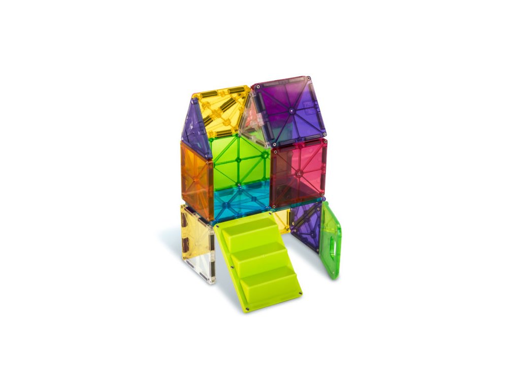 Bezpečnosť a špičková kvalita sú zaistené použitím potravinárskeho, netoxického plastu MABS bez BPA, ftalátov a latexu. Pevná konštrukcia dielikov praskanie a udržiavanie magnety bezpečne na svojom mieste.Sada obsahuje 28 magnetických dielikov:6x štvorec,6x rovnostranný trojuholník,4x pravý trojuholník,3x rovnoramenný trojuholník,2x malý obdĺžnik,2x tvar C,2x tvar T,2x schodisko,1x dvere,1x sada opakovane použiteľných nálepiek.