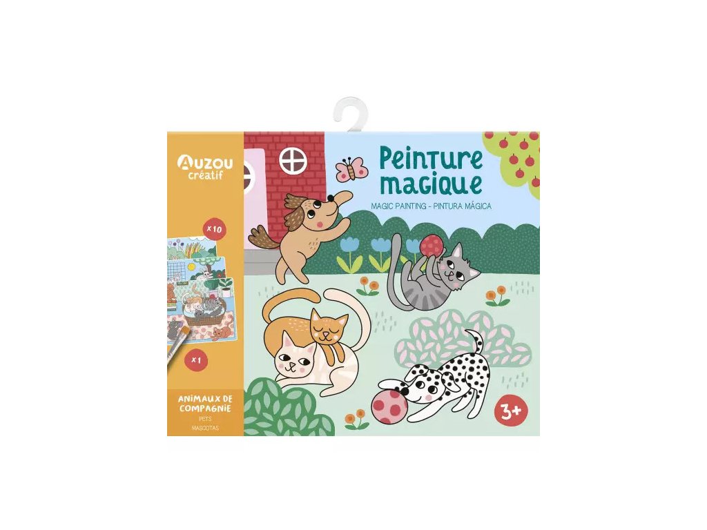 Na vytvorenie farebného obrázku postačí len voda. Pretrením obrázku štetcom s vodou sa začnú objavovať farebné kúzelné obrázky domácich zvieratiek. Skvelá aktivita na precvičovanie jemnej motoriky najmenšej detskej rúčky. Hodnotná zábava na dlhé hodiny ideálna tiež na cesty a výlety. 10 obrázkov na vymaľovanie vodou, drevený štetec. Odporúčaný vek: 3+