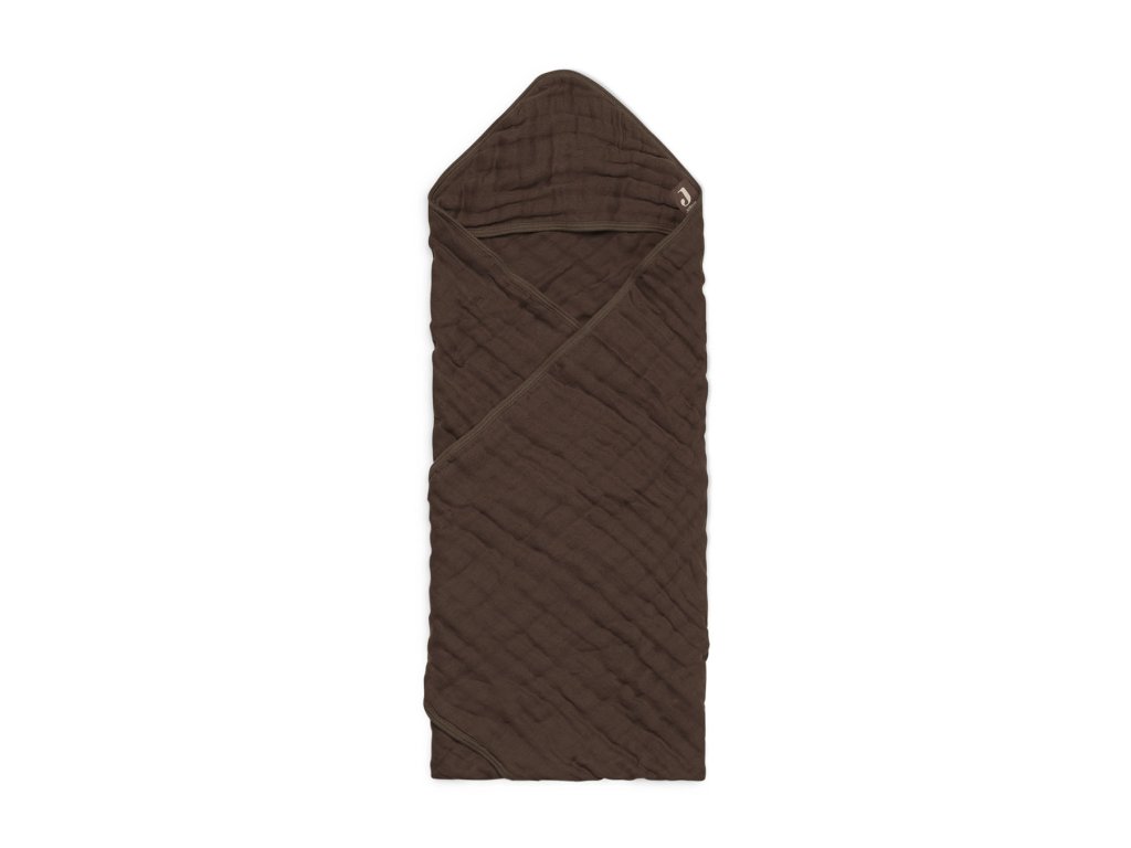 Mäkká detská osuška Jollein z krčenej bavlny v odtieni Chestnut. S kapucňou, savá, rýchloschnúca a ideálna pre bábätká aj batoľatá.