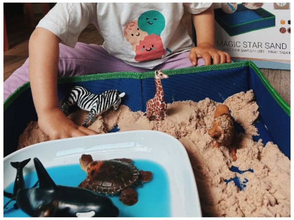 Súčasťou je aj praktická podložka alebo box, ktorý udrží piesok na jednom mieste.
