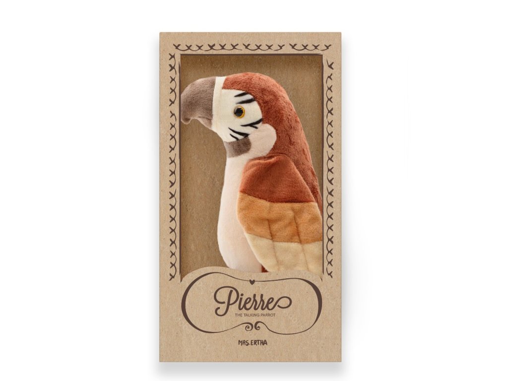 Zoznámte sa s hovoriacim plyšovým papagájom Pierre od značky Mrs. Ertha – veselým interaktívnym kamarátom, ktorý dokáže zopakovať každé slovo alebo zvuk, ktorý počuje (v slovenčine aj češtine), a pritom rozkošne máva krídlami. Tento očarujúci papagáj rozosmeje nielen deti, ale aj dospelých a okamžite rozprúdi zábavu kdekoľvek sa objaví.