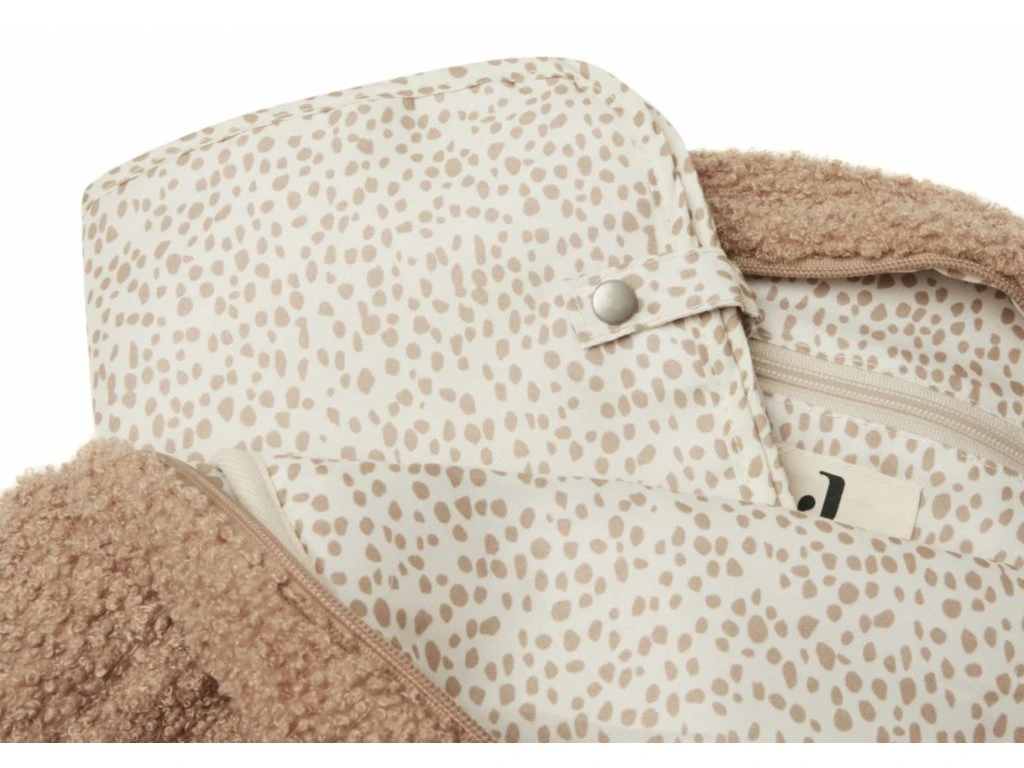 Prebaľovacia taška na kočík bouclé biscuit Jollein je ideálnym pomocníkom pre rodičov na cestách. Vďaka veľkej hlavnej priehradke na zips máte všetky potrebné veci pre vaše bábätko vždy prehľadne uložené a ľahko dostupné.