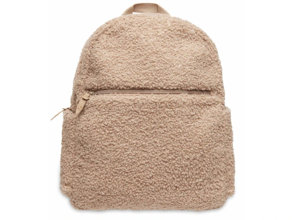 Vyrobená z mäkkého bouclé materiálu, ktorý je príjemný na dotyk a zároveň odolný. Posilnené dno udržiava tašku vo vzpriamenej polohe aj pri položení na zem.