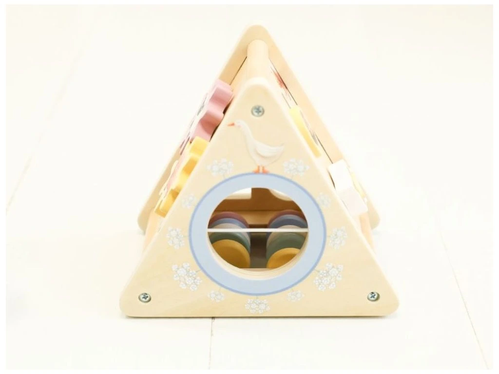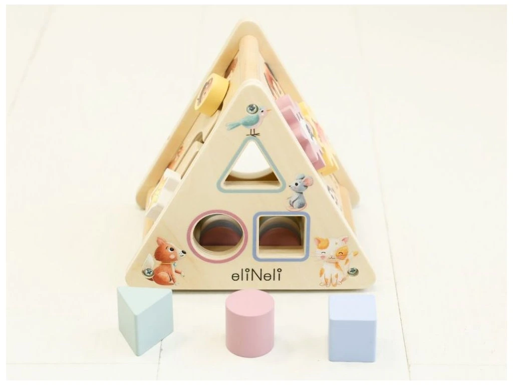 Drevený activity board v tvare trojuholníka je zábavná a interaktívna hračka pre deti. Obsahuje rôzne prvky a aktivity, ktoré podporujú objavovanie a prirodzený rozvoj dieťaťa.