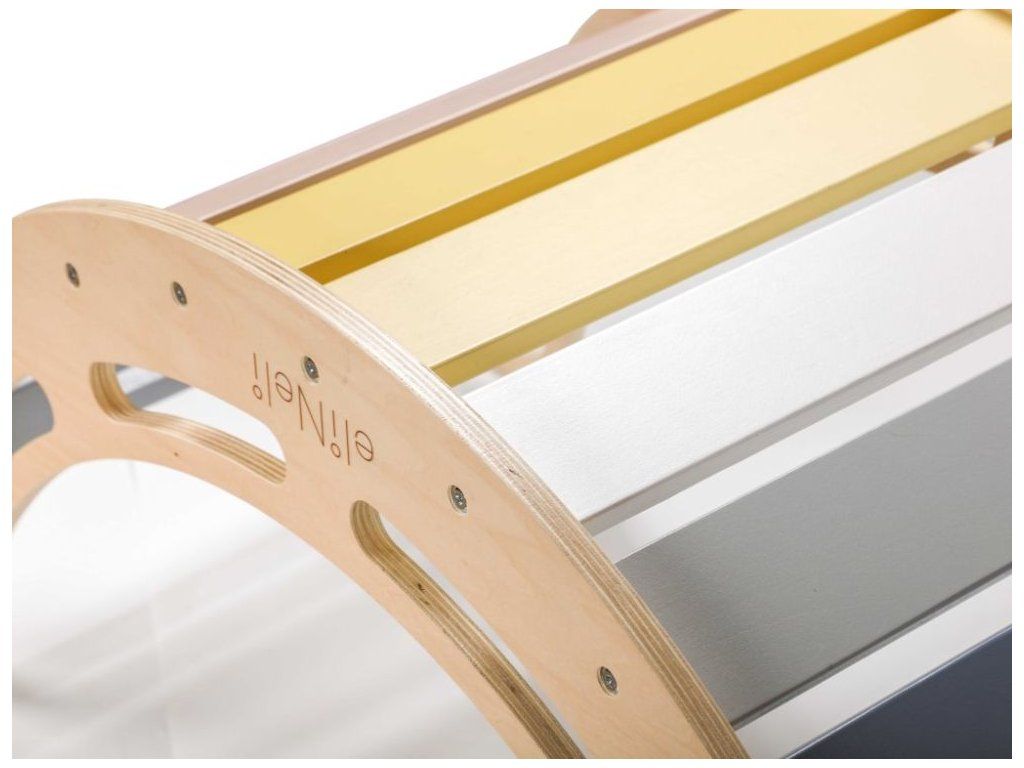 Drevená Montessori hojdačka pre deti je multifunkčná pohybová hračka, ktorá ponúka deťom prirodzený pohyb a zábavu. Deti sa na nej môžu hojdať, liezť, balansovať alebo ju otočiť a využiť ako most či skrýšu.