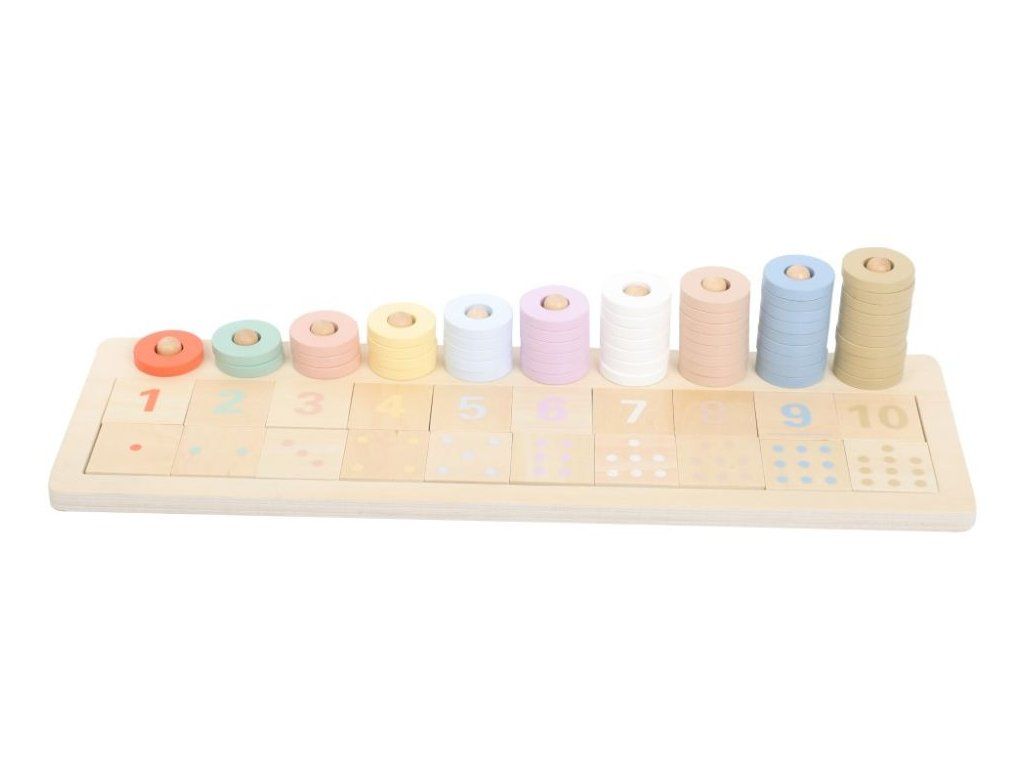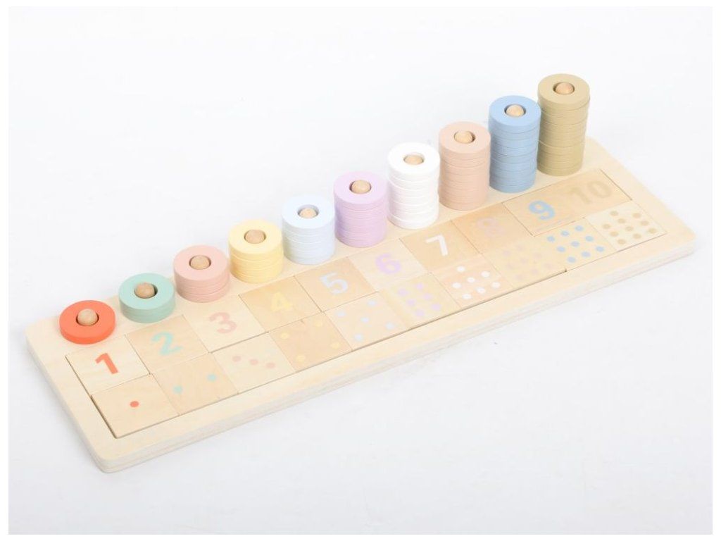 Táto drevená edukatívna hračka pomáha deťom pochopiť základné princípy počítania. Dieťa manipuluje s jednotlivými dielikmi, presúva ich alebo nasadzuje a sleduje, ako sa mení počet.