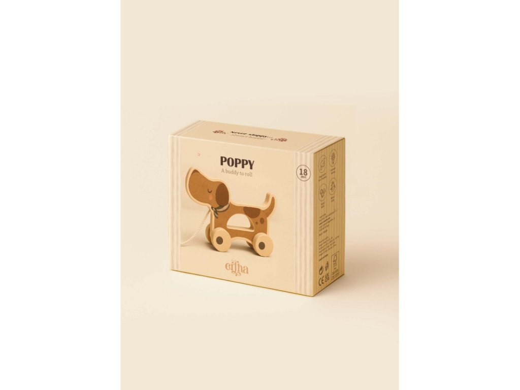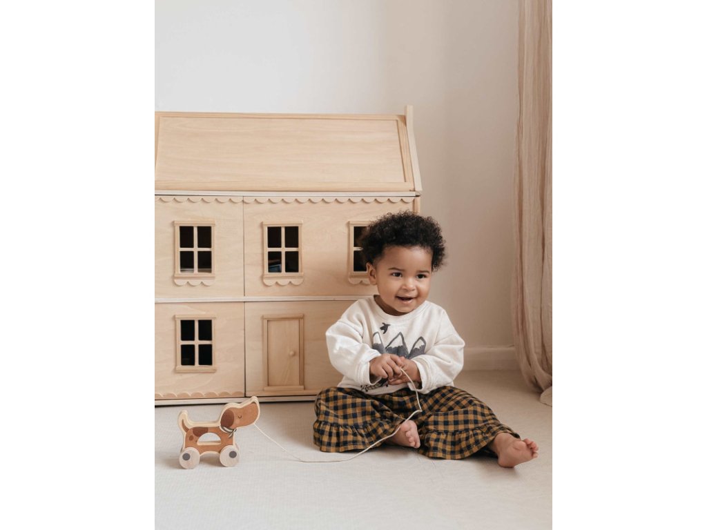 Mrs. Ertha drevený psík na ťahanie je vyrobený zo 100 % dreva s dôrazom na kvalitu, bezpečnosť a dlhú životnosť. Jemné tvary a prírodné prevedenie príjemne padnú do detských rúk a zároveň krásne zapadnú do každej detskej izby.