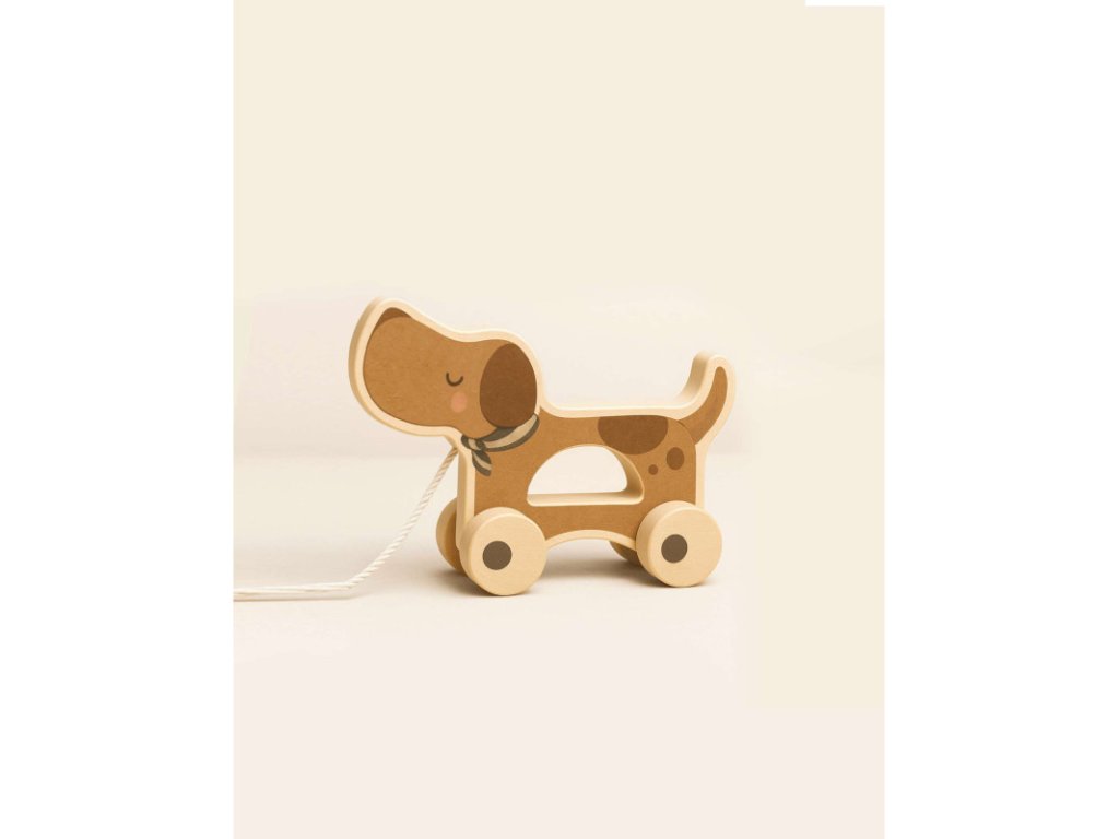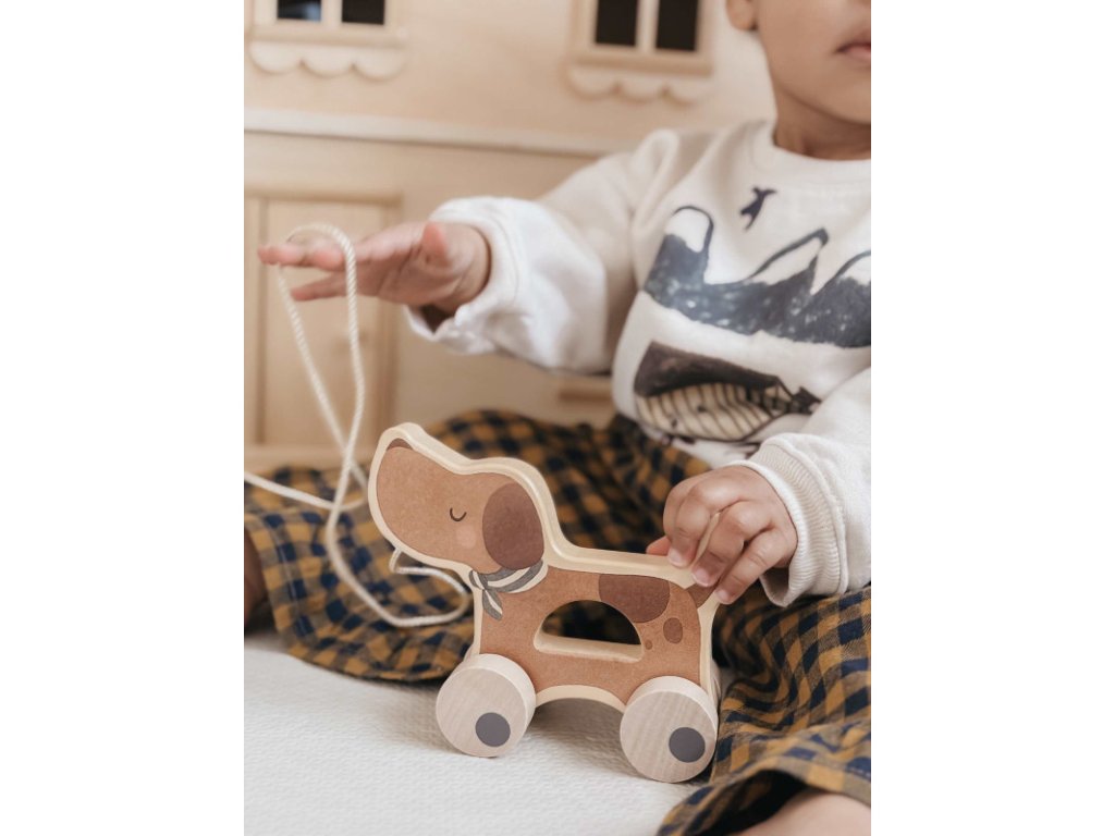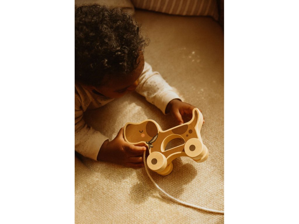 Psík na ťahanie podporuje koordináciu pohybov a orientáciu v priestore. Dieťa sa učí sledovať smer pohybu, reagovať na prekážky a postupne si buduje sebadôveru pri samostatnej hre.