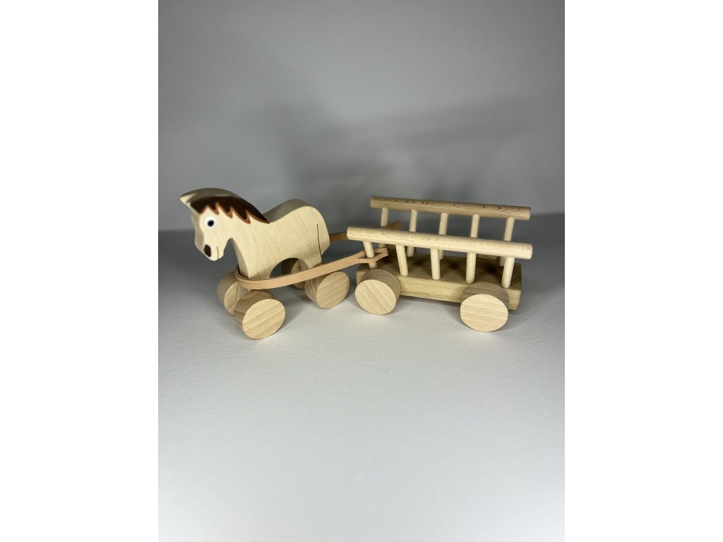 Drevený koník s vozíkom – ručne vyrobená drevená hračka ručne vyrobený slovenský výrobok