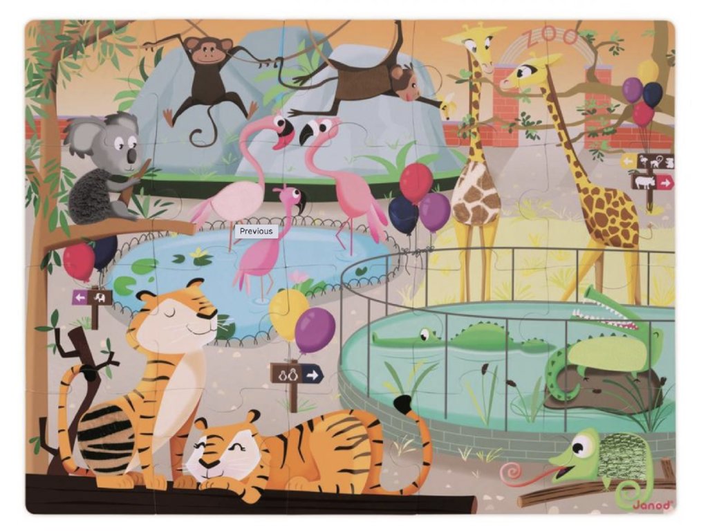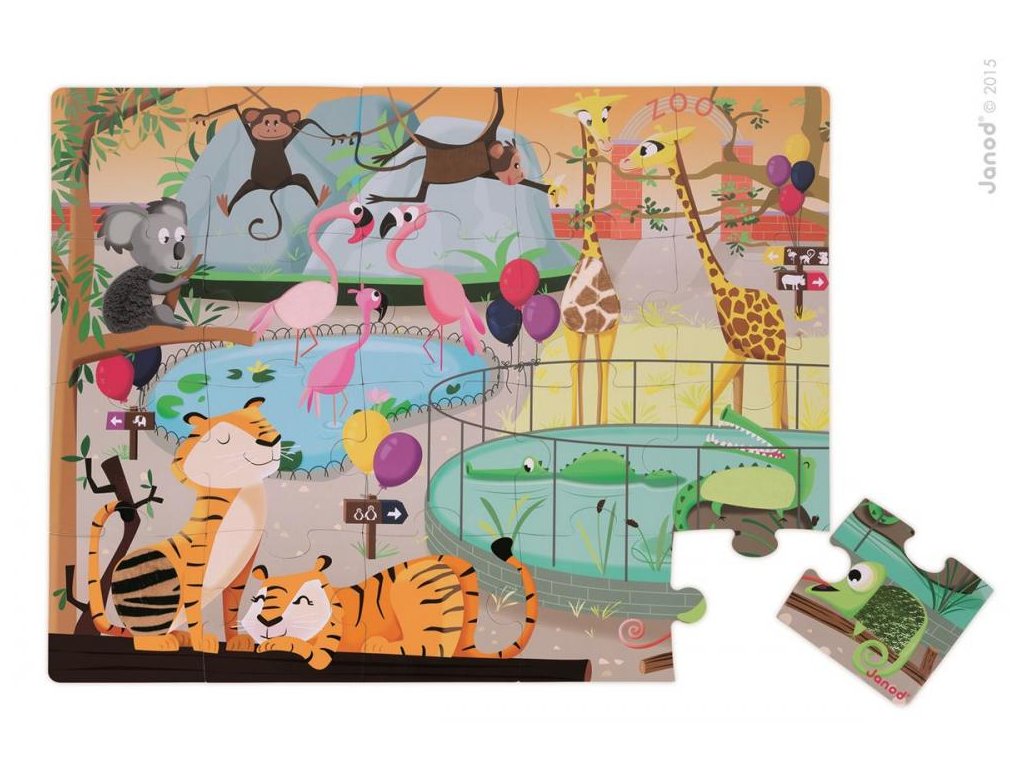 Vlastnosti Janod Dotykového puzzle "Deň v zoologickej záhrade":