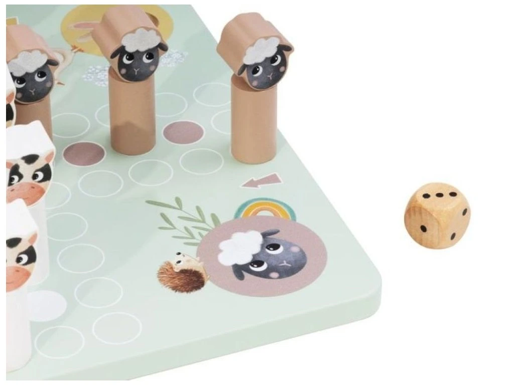 Obľúbená klasická hra Človeče nehnevaj sa prichádza v originálnom prevedení so zvieratkami z farmy. Namiesto klasických figúrok deti posúvajú kravičky, ovečky či ďalšie zvieratká a snažia sa dostať ich do cieľa.