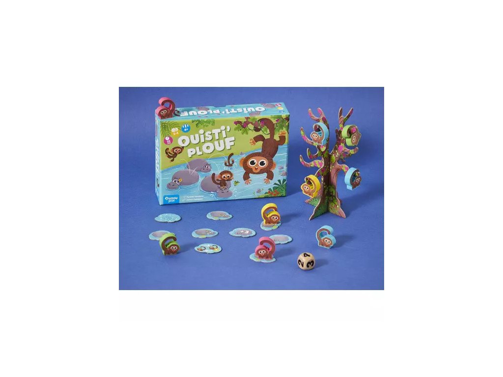 Pomôž veselým opičkám Kosmáčom prekonať nebezpečnú rieku bez toho, aby spadli do vody! Táto napínavá spoločenská hra na pamäť a taktiku pre 2 až 4 hráčov vás zabaví na dlhé hodiny. Odporúčaný vek: 4+. Hra je vhodná pre celú rodinu. Staňte sa hrdinom, ktorý dostane malé opičky bezpečne na strom! Na to, aby sa ti to podarilo, budeš potrebovať nielen šťastie, ale aj dobrú pamäť a strategické myslenie. Hra začína rozložením štartovacieho poľa a dlaždíc v troch radoch, vytvoríš tak hracie pole. Na koniec hracieho poľa rozlož 3D strom. Tvojou úlohou je hodiť kockou a pomocou správnych skokov na hrošíkov sa dostať až ku stromu. Zaves opičku chvostnom na strom a je to! . Na konci čaká 3D strom, kde opičky musia skončiť. Skvelá zábava, ktorá rozvíja pamäť, taktiku a tímového ducha! Hra obsahuje 1 štartovacie pole, 12 drevených figúrok - opičiek Kosmáčov (4 farby), 1 drevenú kocku s číslami 2-4, 1 3D strom (zložený z dvoch častí), 39 obojstranných dlaždíc s hrošíkmi a úlohami. Rozmer balenia: 20cm x 14 cm x 4,5 cm. Odporúčaný vek: 41 Čas hry: 10 min. Počet hráčov:2-4 Odporúčaný vek: 4+