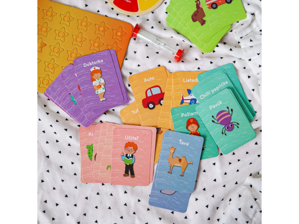 Vďaka presýpacím hodinám a bodovacím hviezdičkám si môžete zvoliť jednoduchú zábavnú hru pre menšie deti alebo napínavú súťažnú verziu na čas pre starších hráčov. Hra sa dá ľahko prispôsobiť veku aj počtu hráčov.