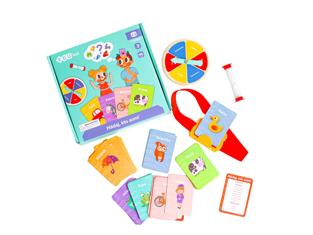 Hádaj, kto som! SK je veselá spoločenská hra, ktorá spája zábavu so vzdelávaním. Jeden hráč má na čele kartu s obrázkom, ktorú nevidí, zatiaľ čo ostatní hráči ju vidia. Prostredníctvom otázok, pantomímy a opisovania sa snaží uhádnuť, čo sa na karte nachádza. Čakajú Vás zvieratká, predmety a rôzne postavičky – každé kolo prináša nové prekvapenia a veľa smiechu.