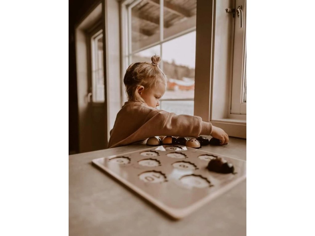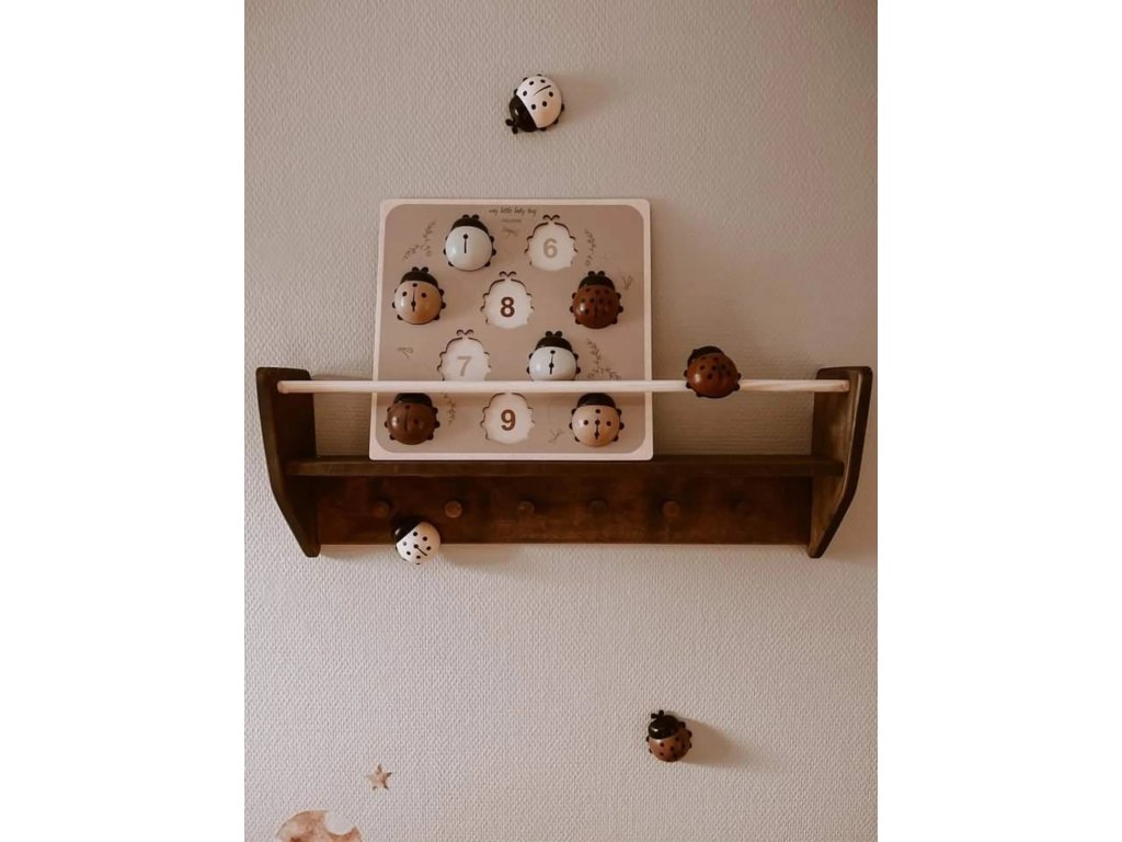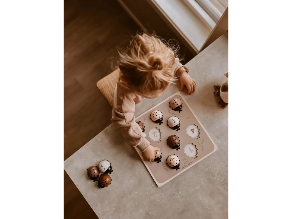 Táto drevená skladačka pomôže najmenším naučiť sa počítať a zároveň sa zabaviť. V prvej fáze rozvíja jeho jemnú motoriku, koordináciu oko-ruka a rozpoznávanie tvarov a farieb. V druhej fáze im pomáha naučiť sa prvé čísla a počítať. Nádherný dizajn Mrs. Ertha. Každá drevená lienka je dostatočne veľká (5x6 cm), praktická na úchop. Obsah balenia: 10 lienok očíslovaných podľa bodiek a drevená podstava s číslami. Počítajte bodky a priraďte správne číslo. Materiál: borovicové drevo. Rozmery: 30cm x 30cm x 3.5cm. Odporúčaný vek: 3+