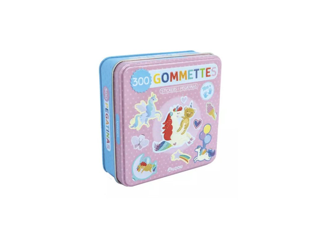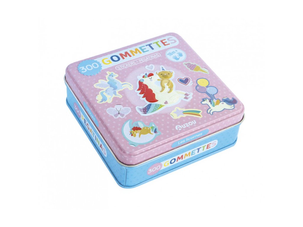 Zábavný set 300 znovupoužiteľných nálepiek s motívmi jednorožcov uložených v pevnej kovovej krabičke. Ideálna kreatívna hračka pre deti, ktorá podporuje fantáziu, jemnú motoriku a samostatnú hru doma aj na cestách.