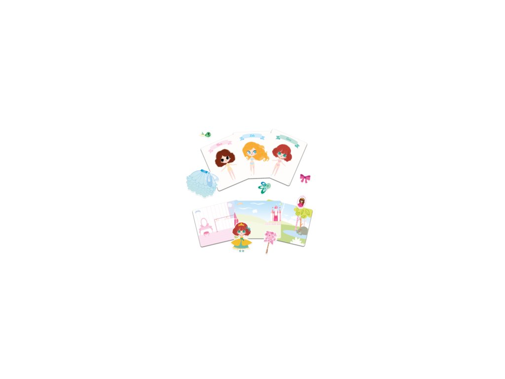 Sada obsahuje 3 obojstranné karty s pozadím na nalepovanie znovuodlepiteľných nálepiek. Spolu 6 scén a 200 nálepiek pre nekonečnú zábavu v rozprávkovom svete princezien. Francúzsky dizajn. Odporúčaný vek: 3+